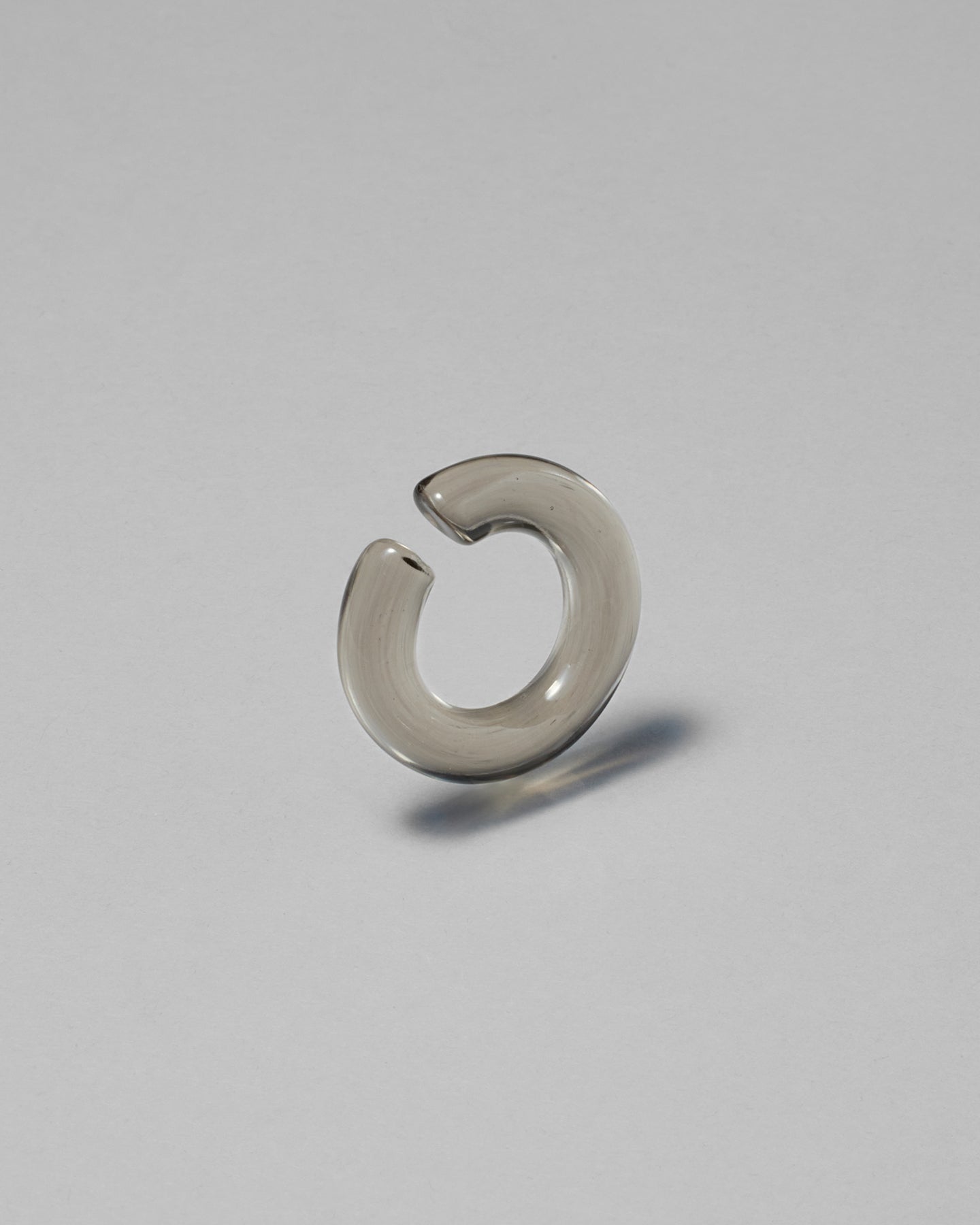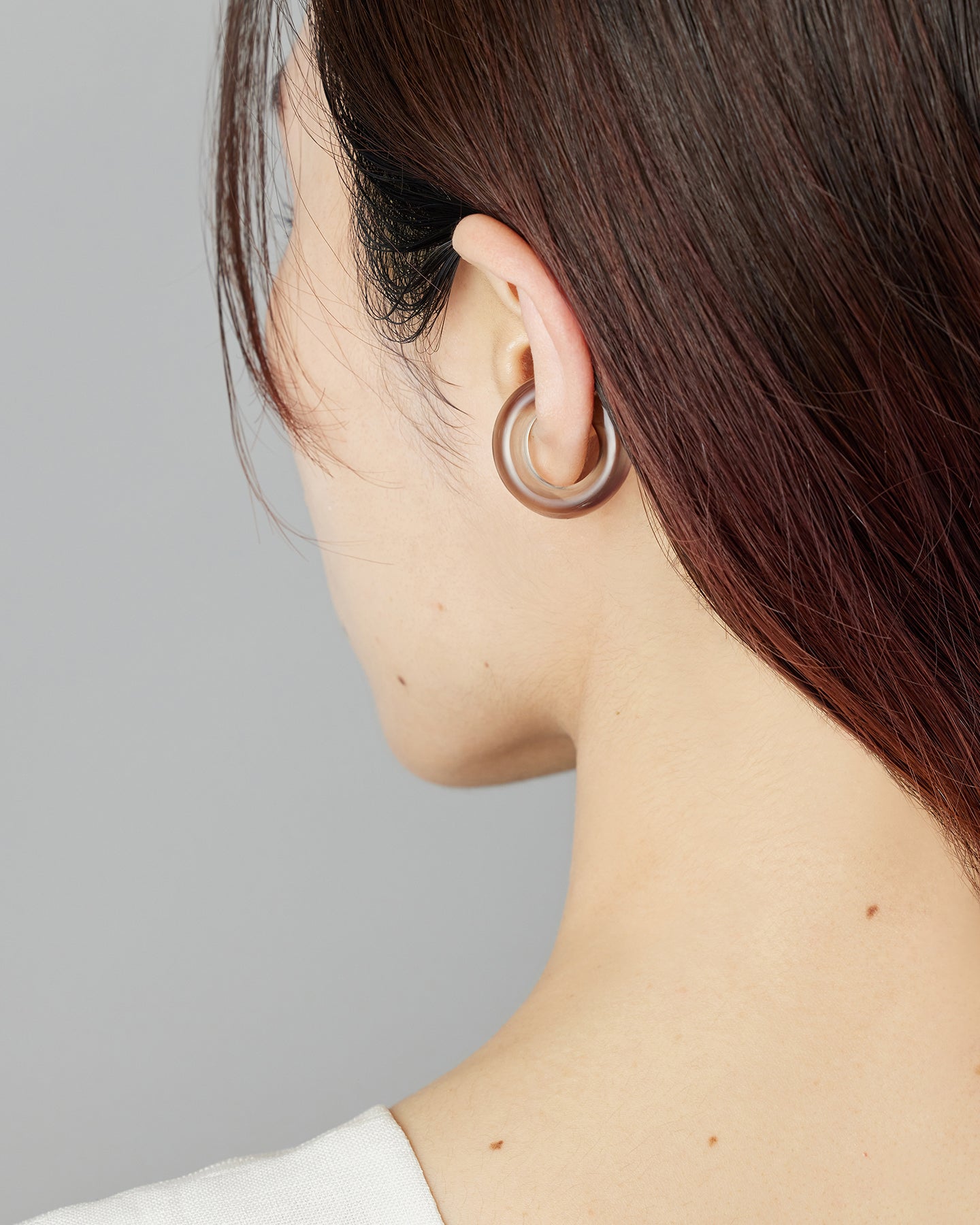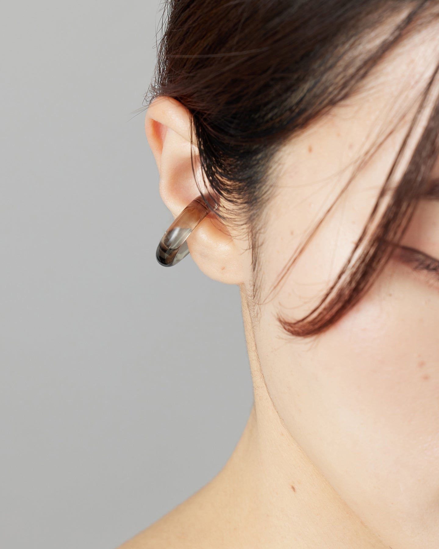 ボリューム感が魅力のイヤーカフ。ガラスの瑞々しさが洗練されたアクセントに。シンプルながらもエレガントであり、ファッショナブルなスモーキーカラーが個性を際立たせます。