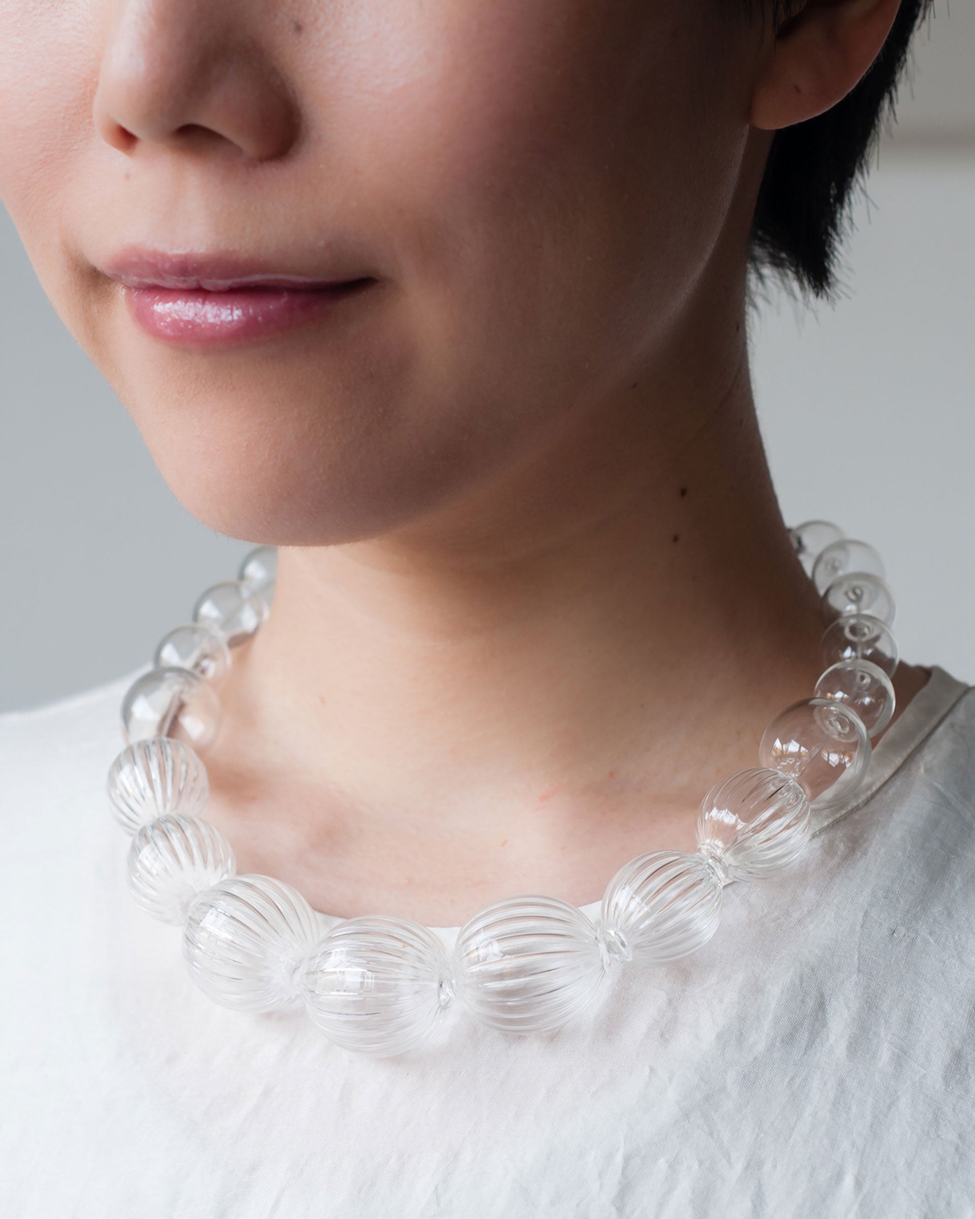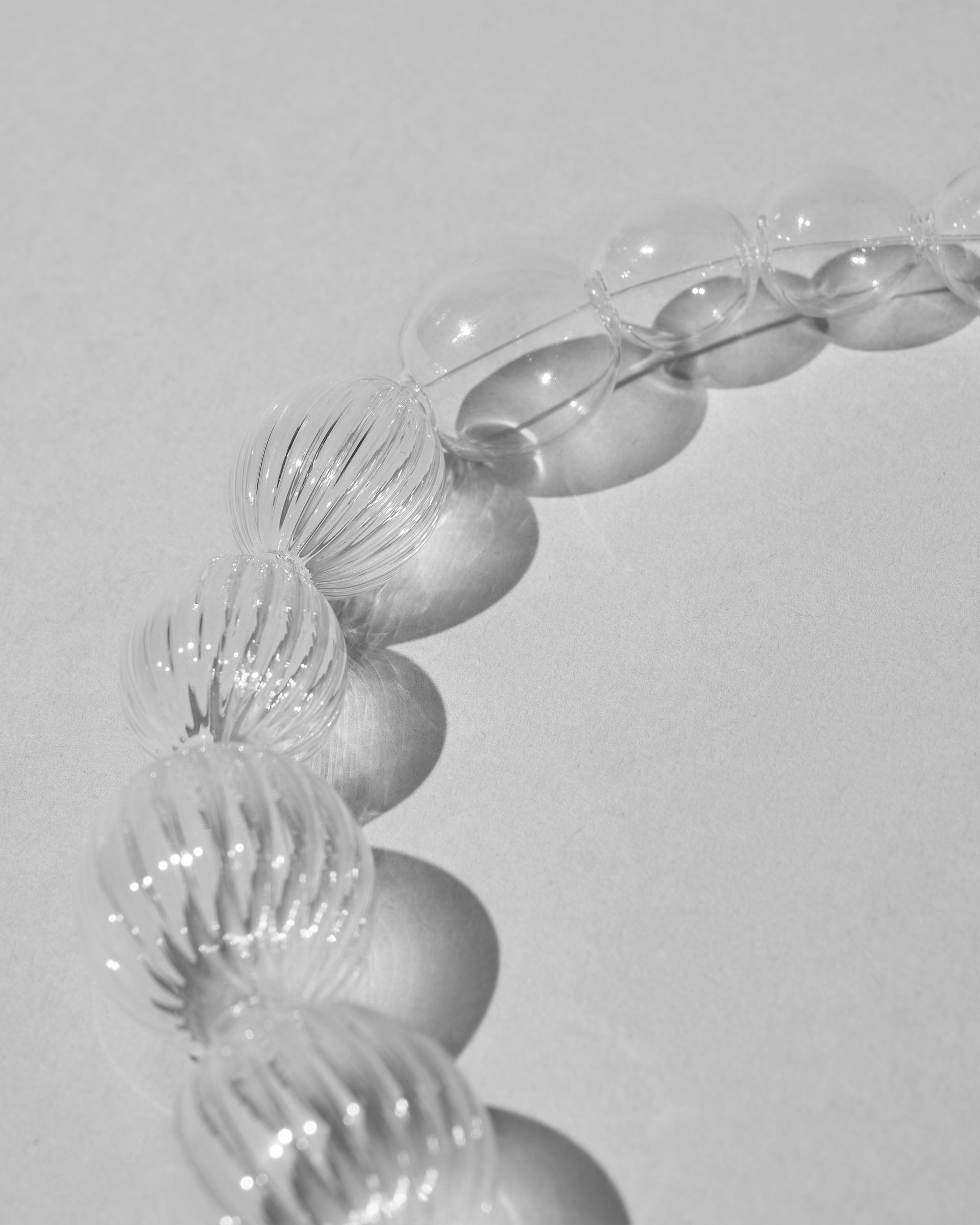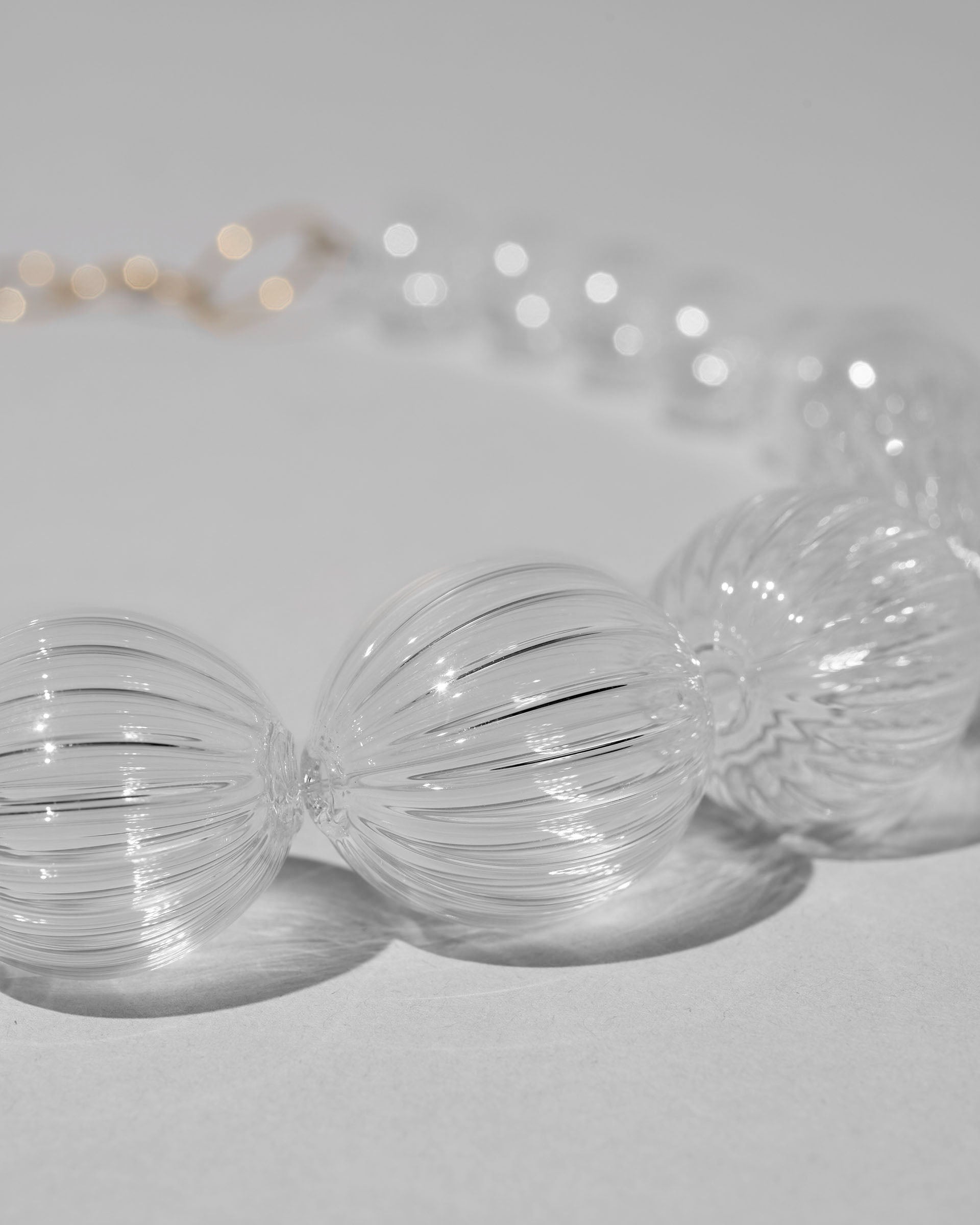 A necklace that looks like a bubble made of glass. Every time you move, it sways and reflects the light.