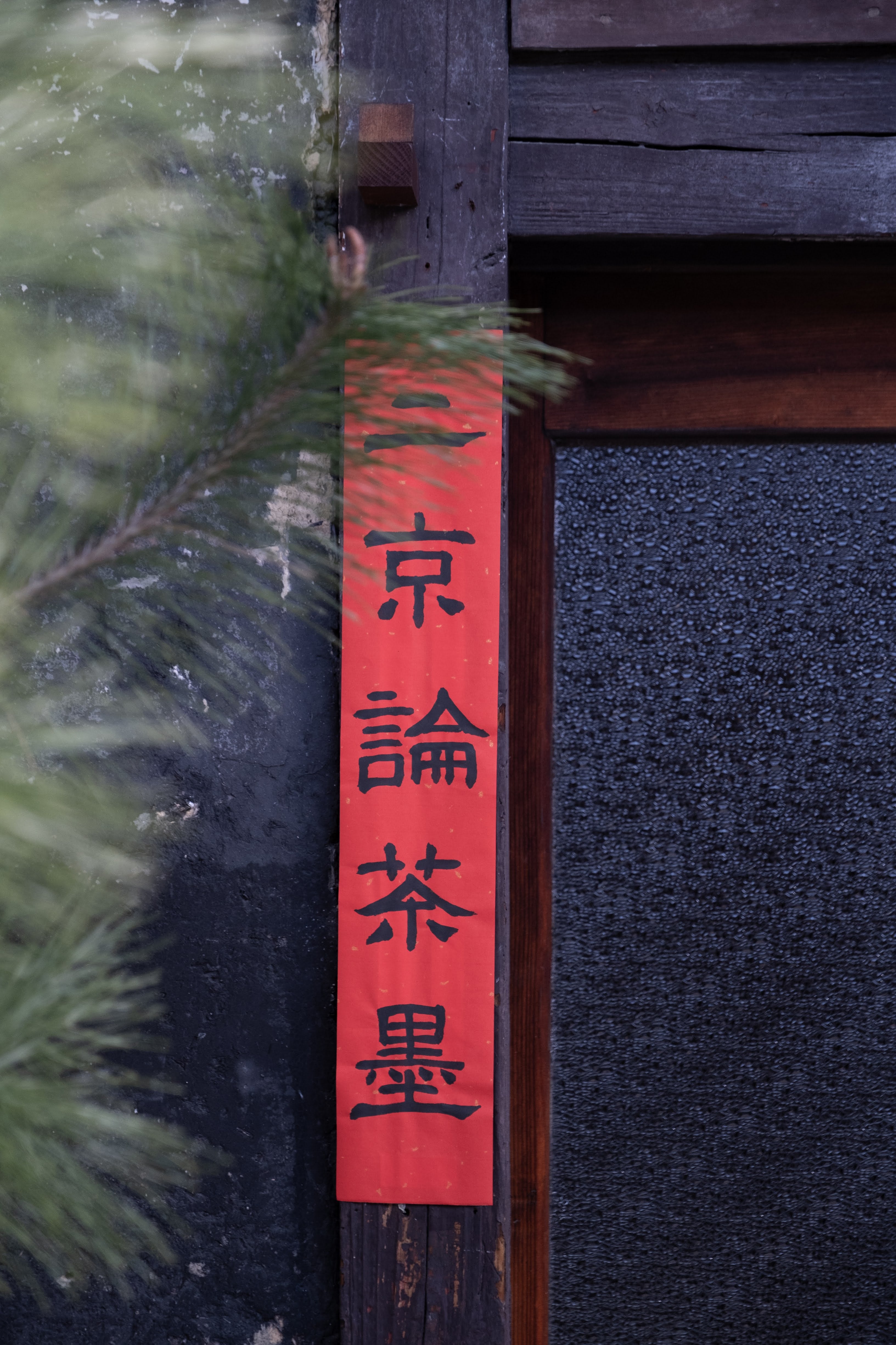 二手舎 京都の扉に貼られている、赤い紙。