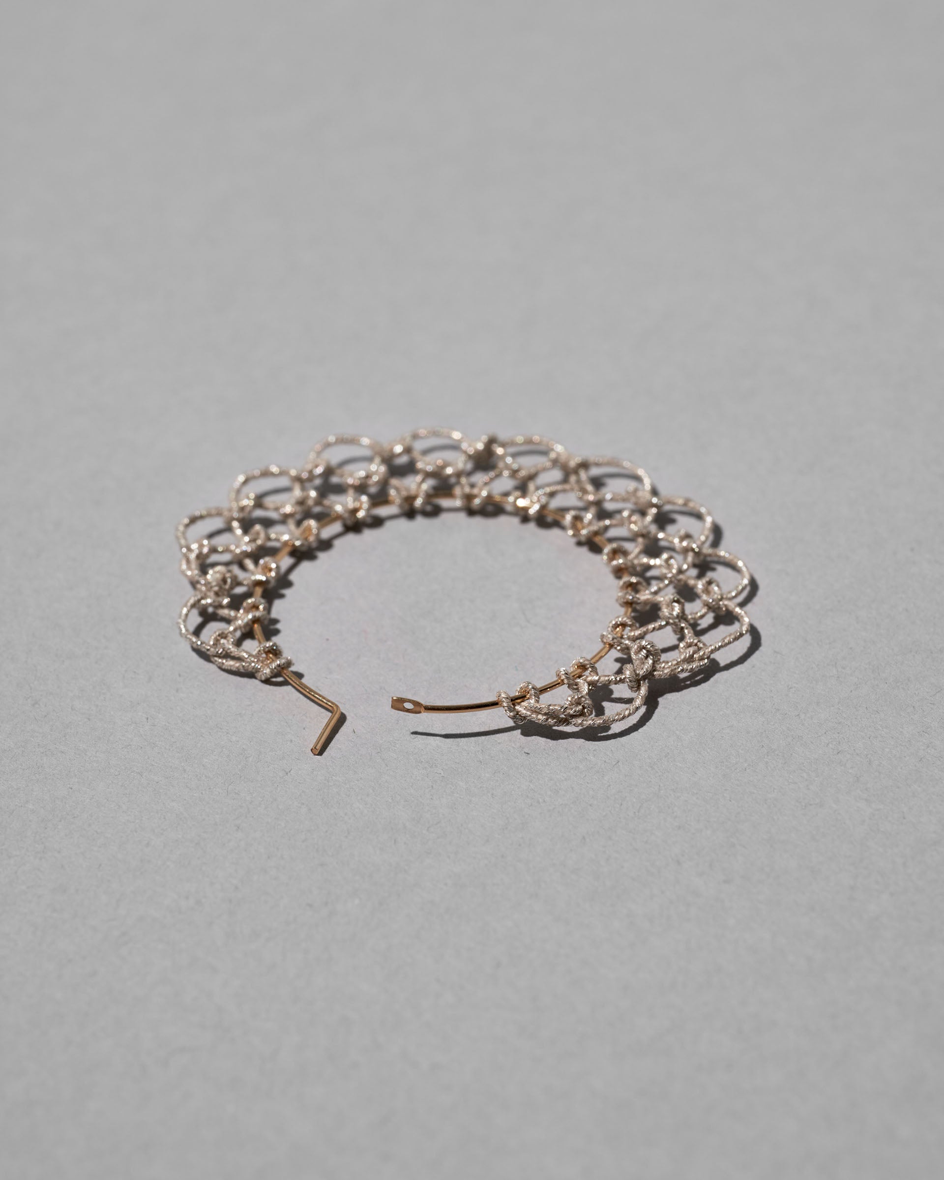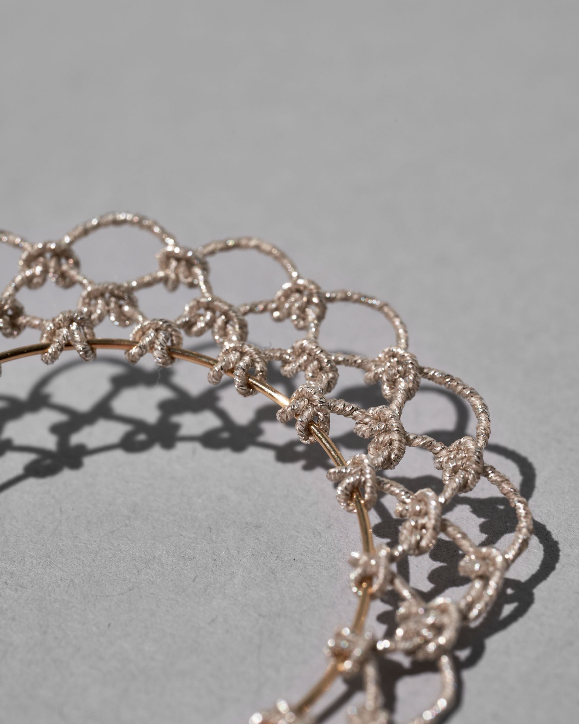 素材に着物や帯で使われる京都で作られた銀糸を用いているため、使い込むほどにアンティークジュエリーのような経年変化を楽しめます。