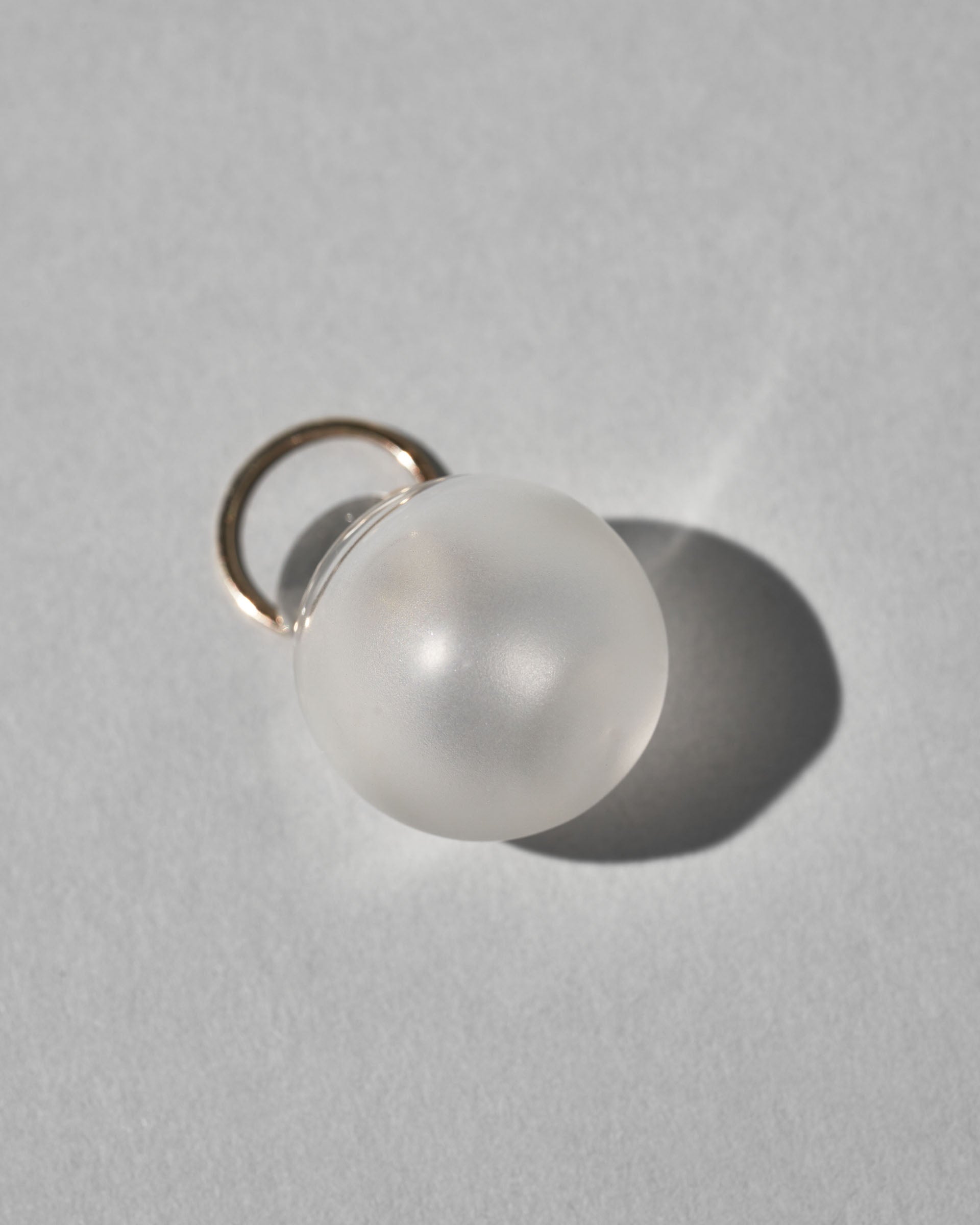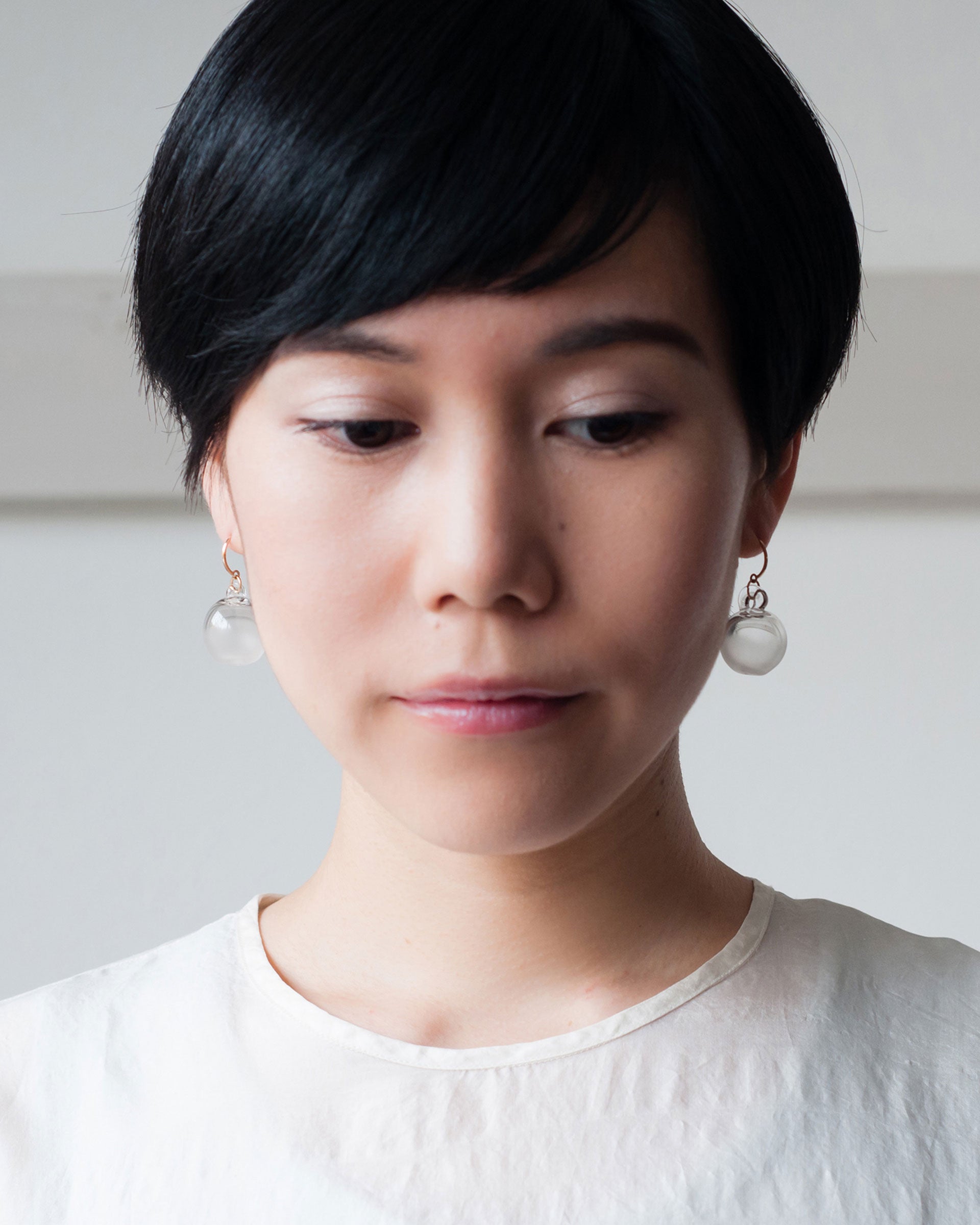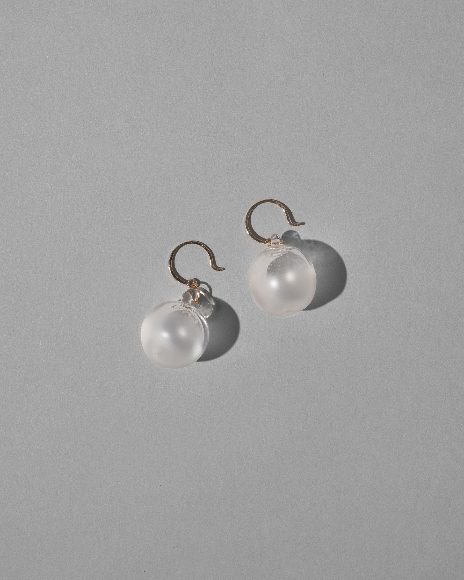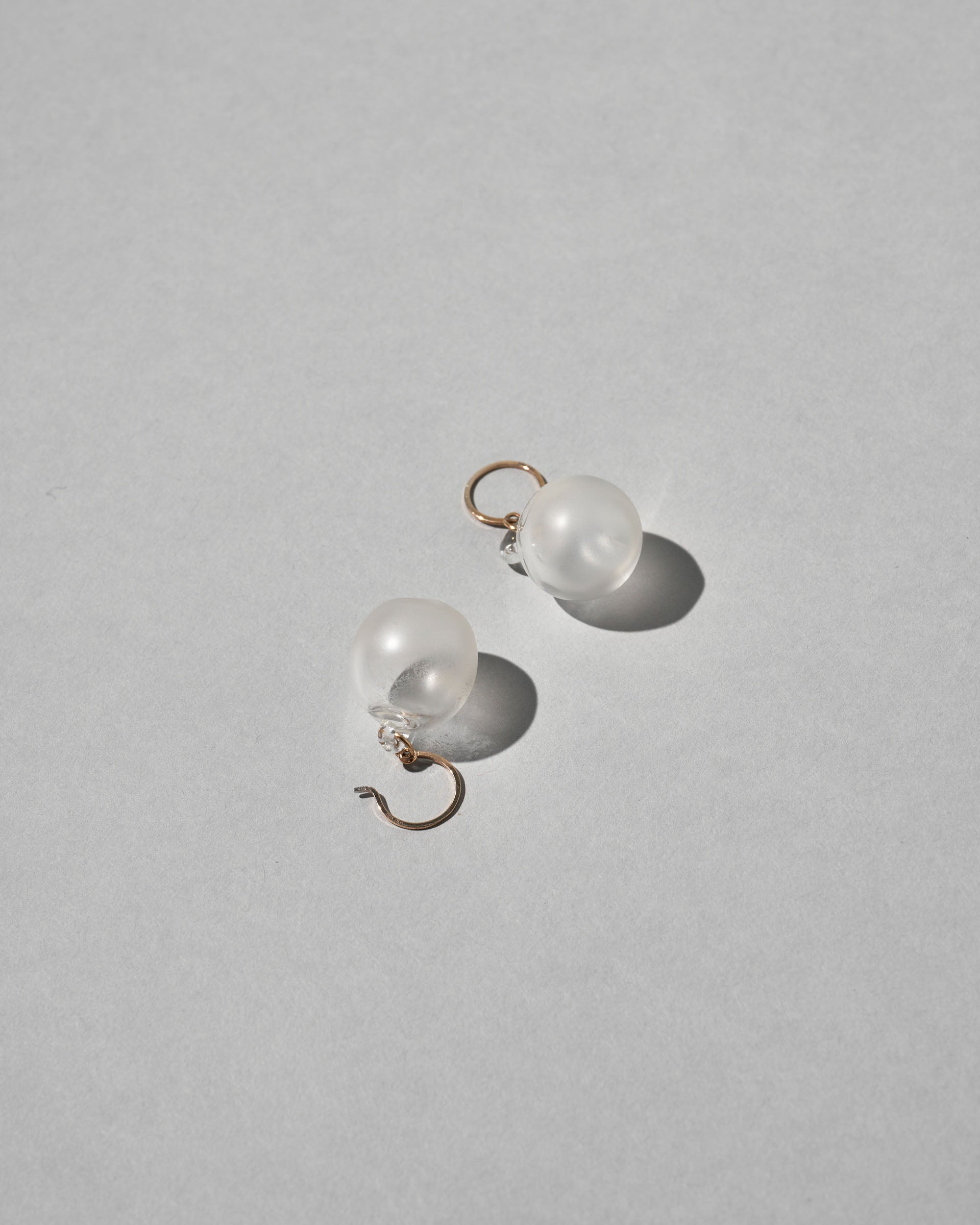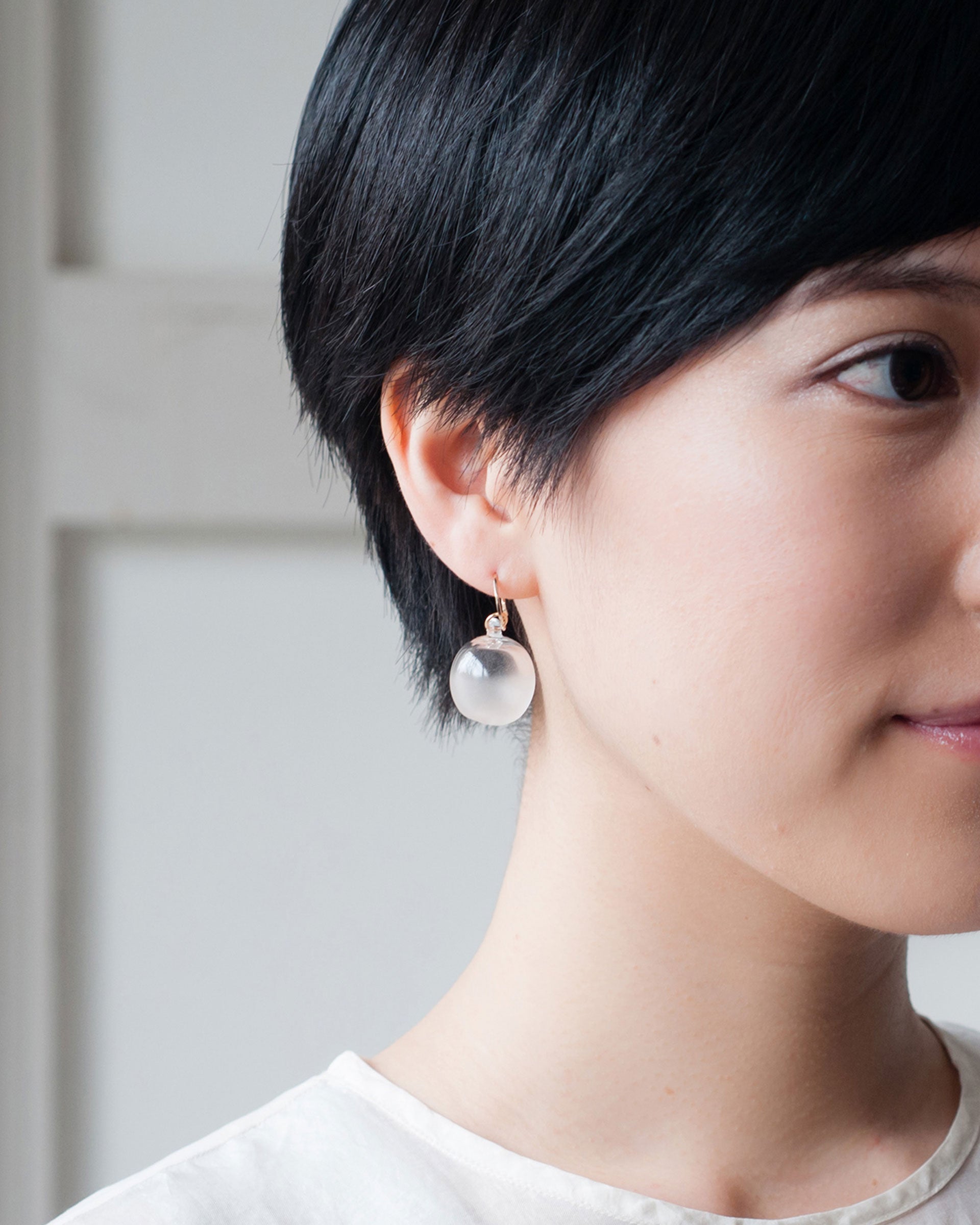 まるでガラスでできた泡を身につけるようなピアス。クリアからマットへ移りゆくガラスのグラデーションが、控えめでありながら存在感あるジュエリーです。