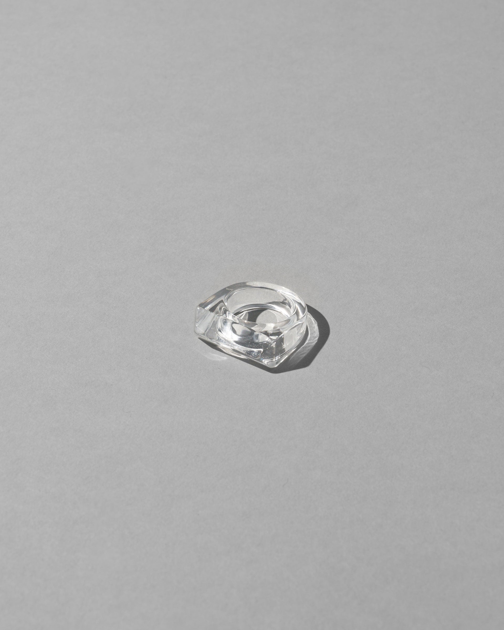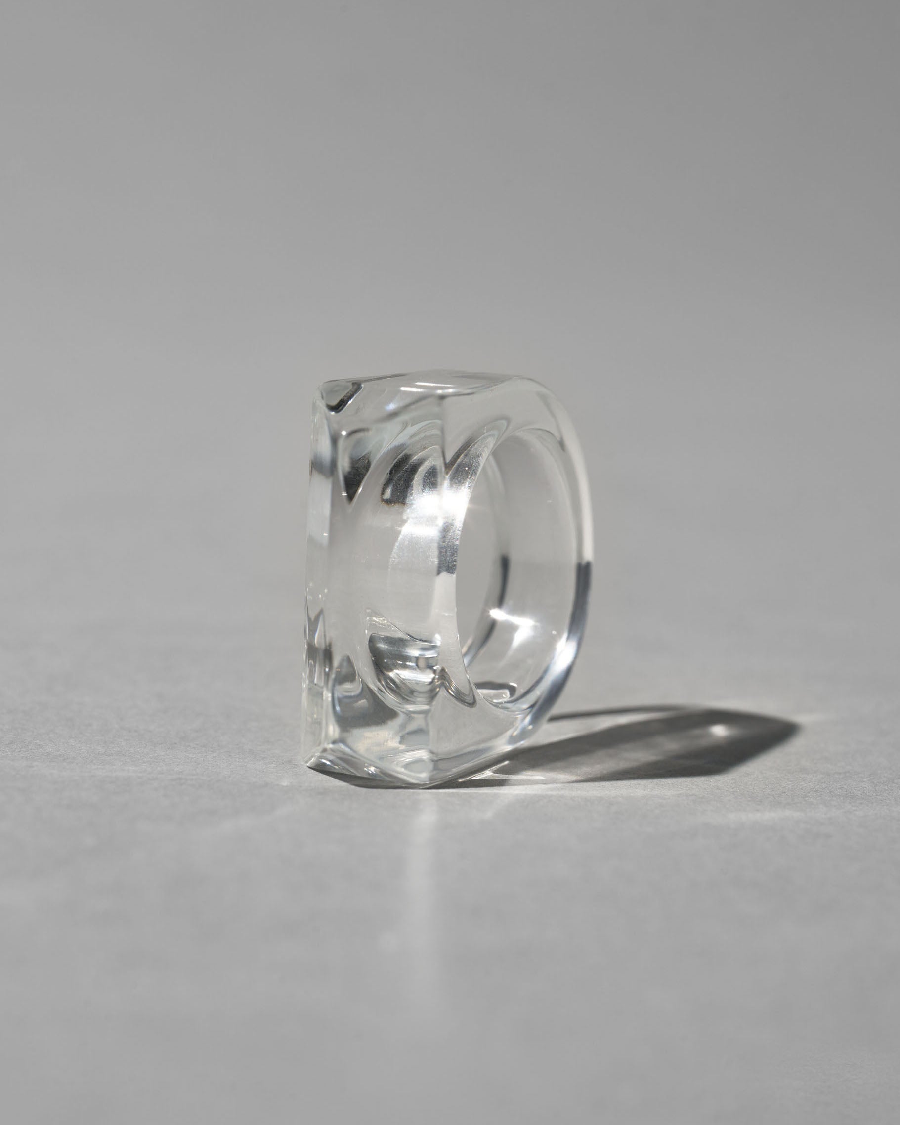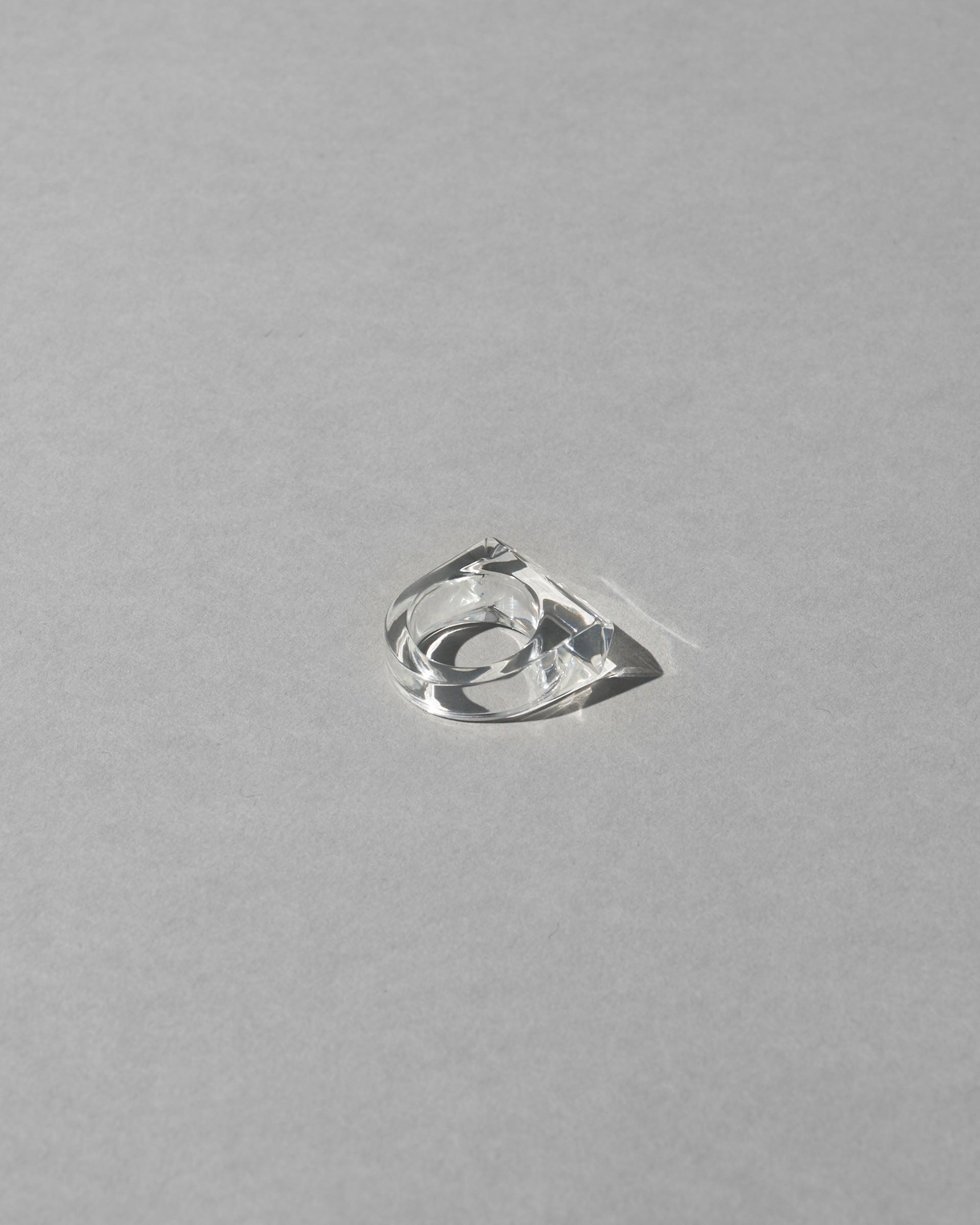砂の中から発掘されたばかりかのような、溶けかかったガラスが美しいエッジーなフォルムをもつリング。