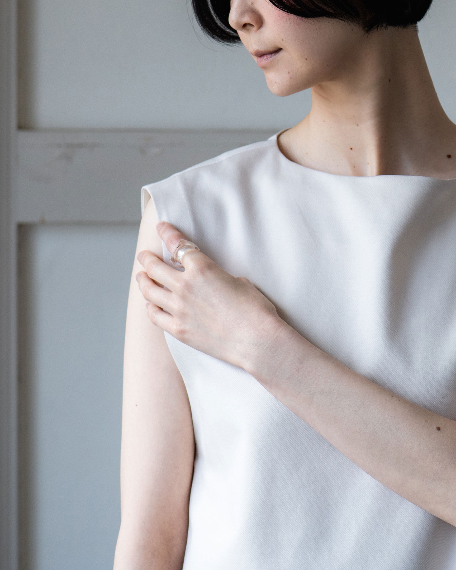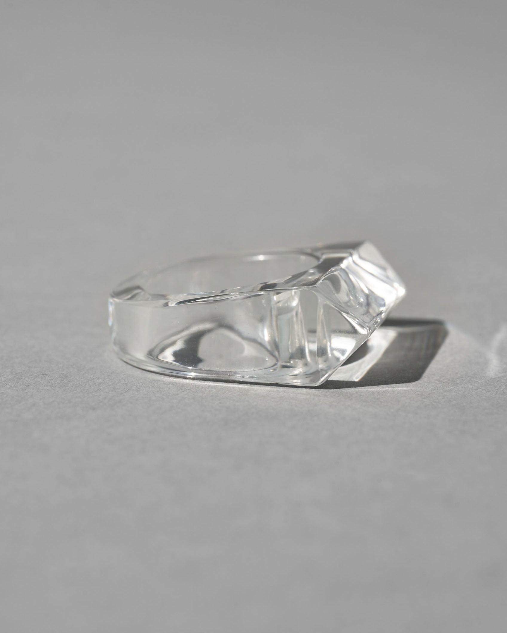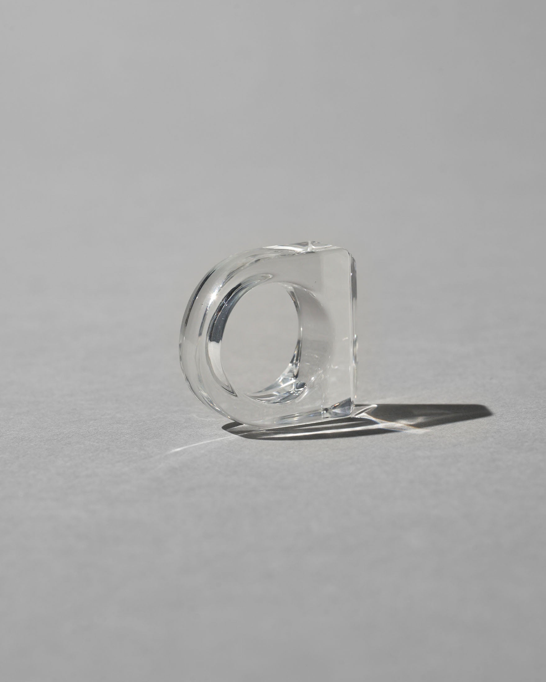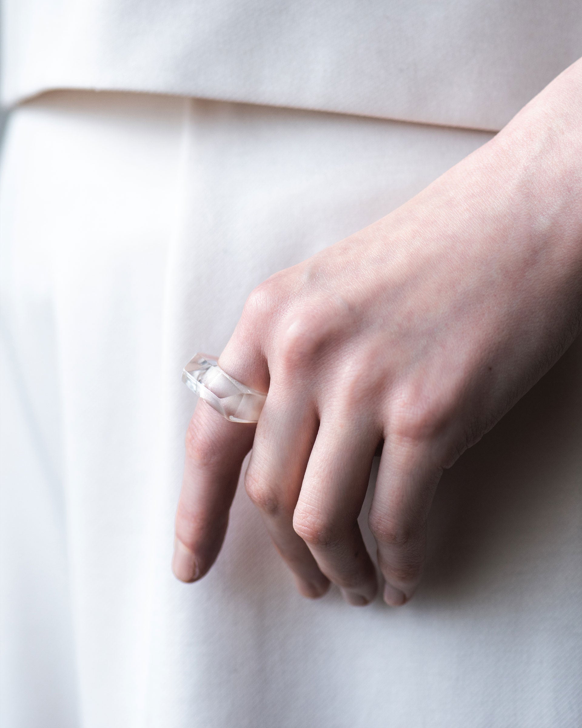 砂の中から発掘されたばかりかのような、溶けかかったガラスが美しいエッジーなフォルムをもつリング。