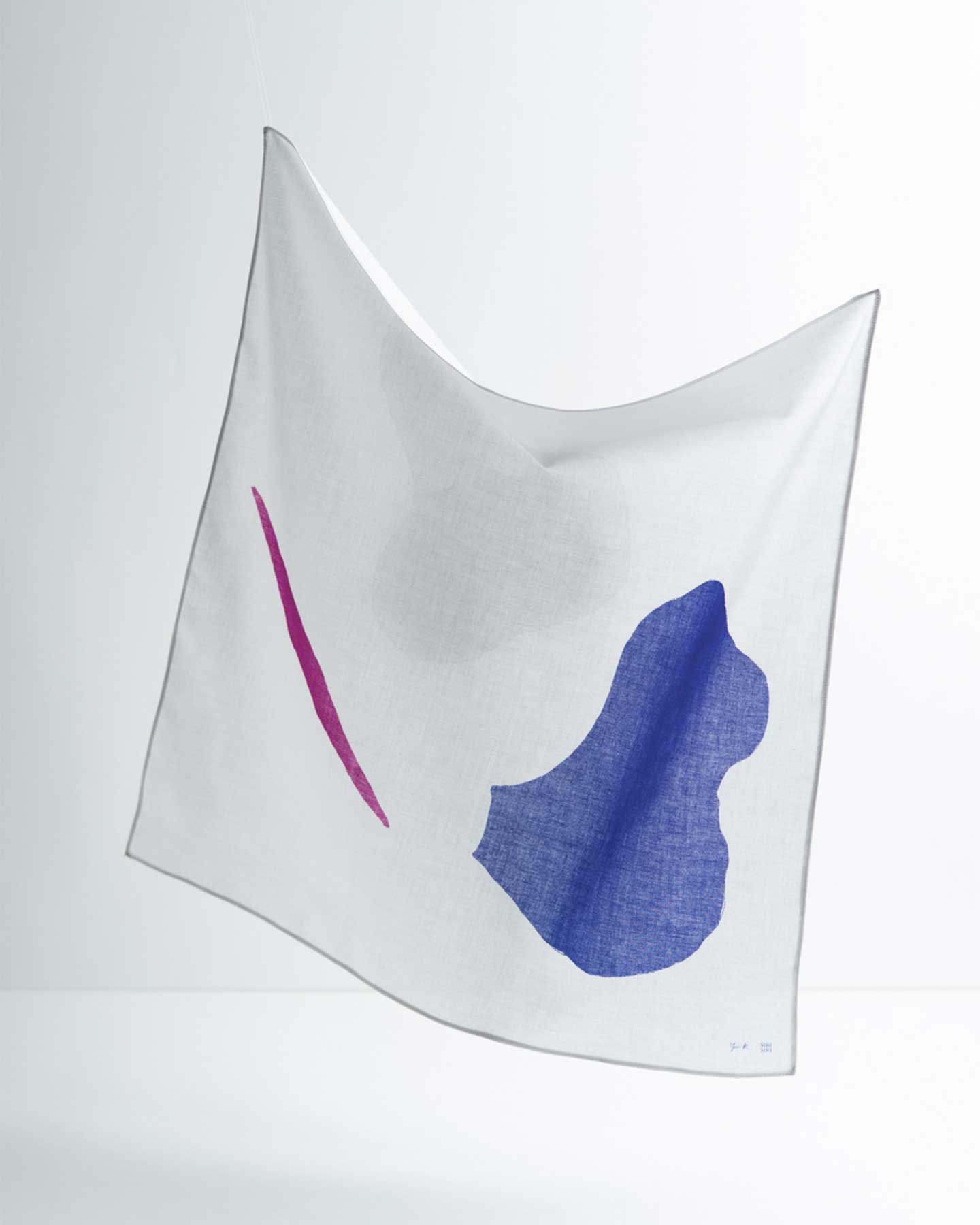 NY在住のアーティスト・Yui Kugimiyaによる描き下ろしのペインティングをモチーフにした、アブストラクトで軽やかなイメージのハンカチ。