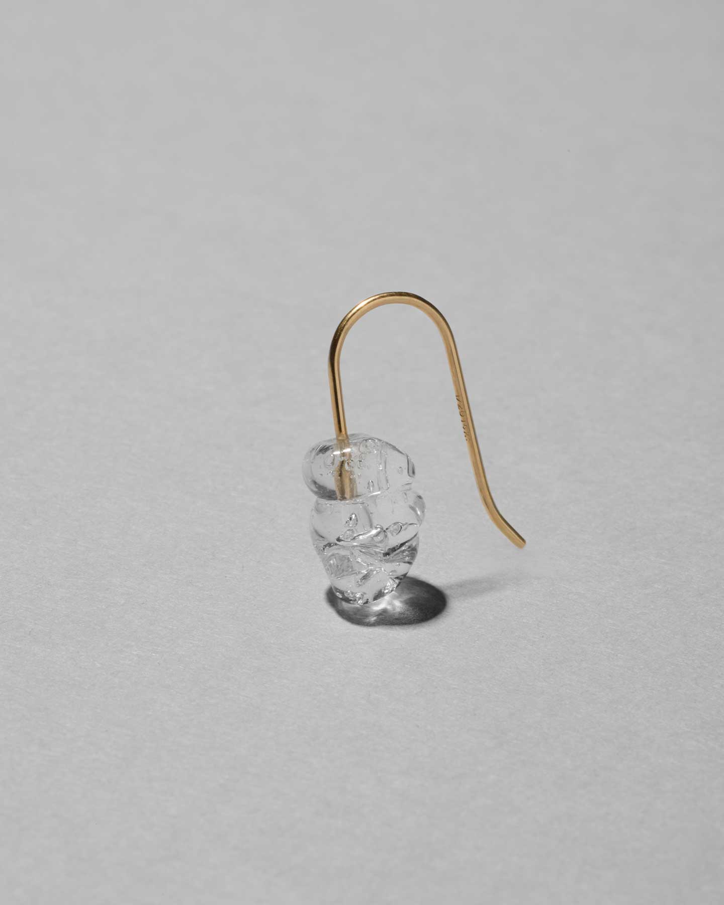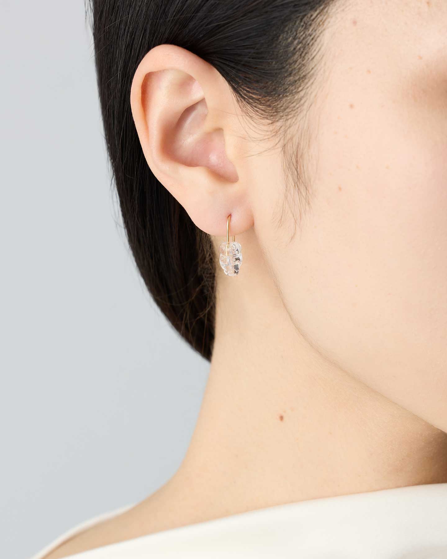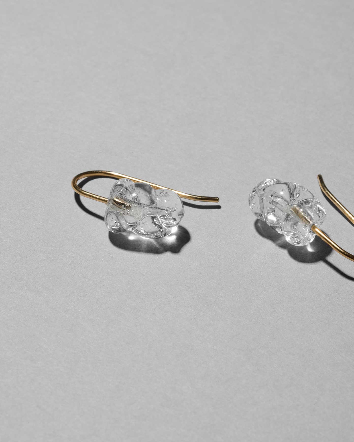 手作業で巻きつけた透明なガラスが生み出す、小さくも躍動感あるフォルムのピアス(イヤリング)。自然に生まれた泡が光を受け、繊細な輝きを放ちます。