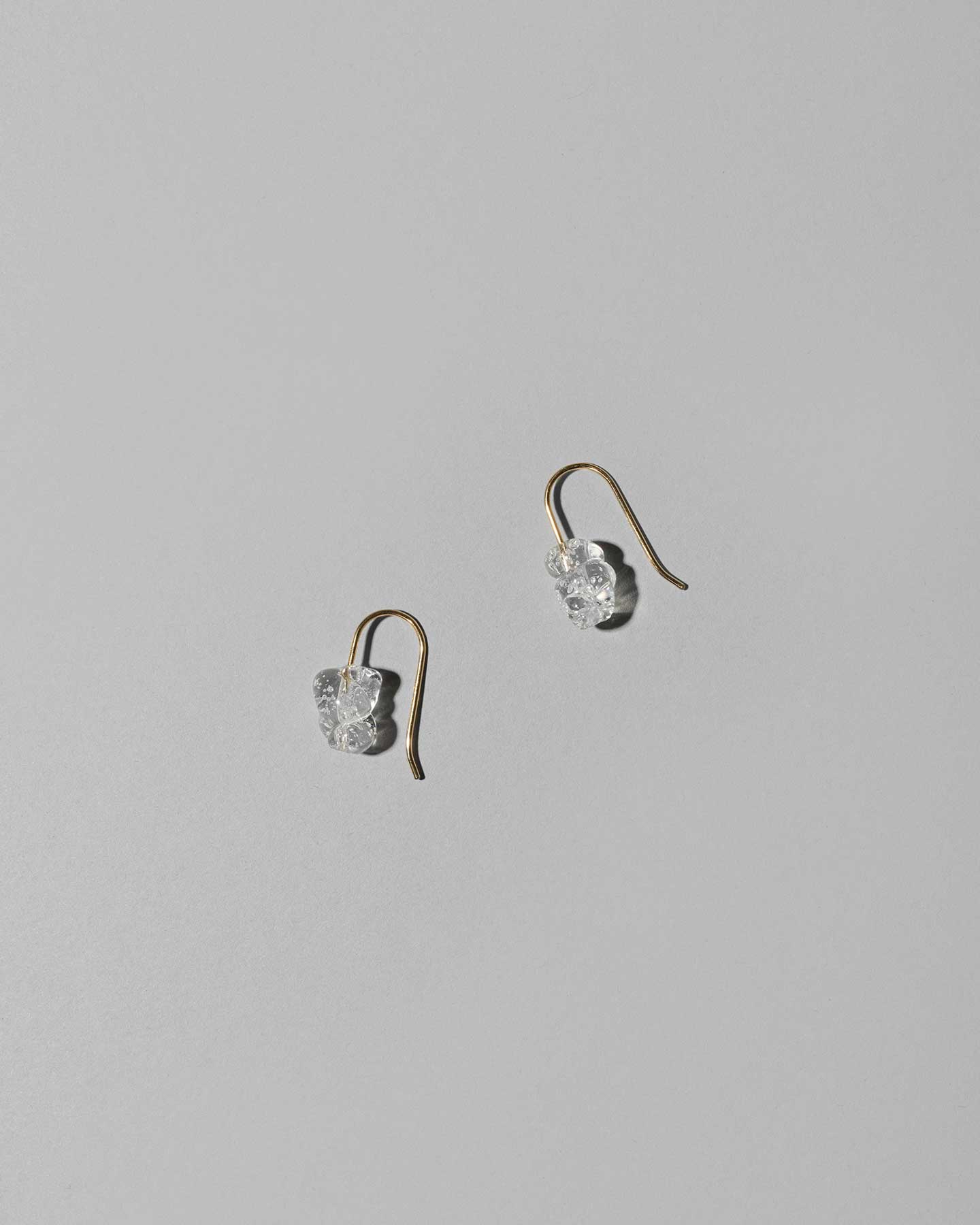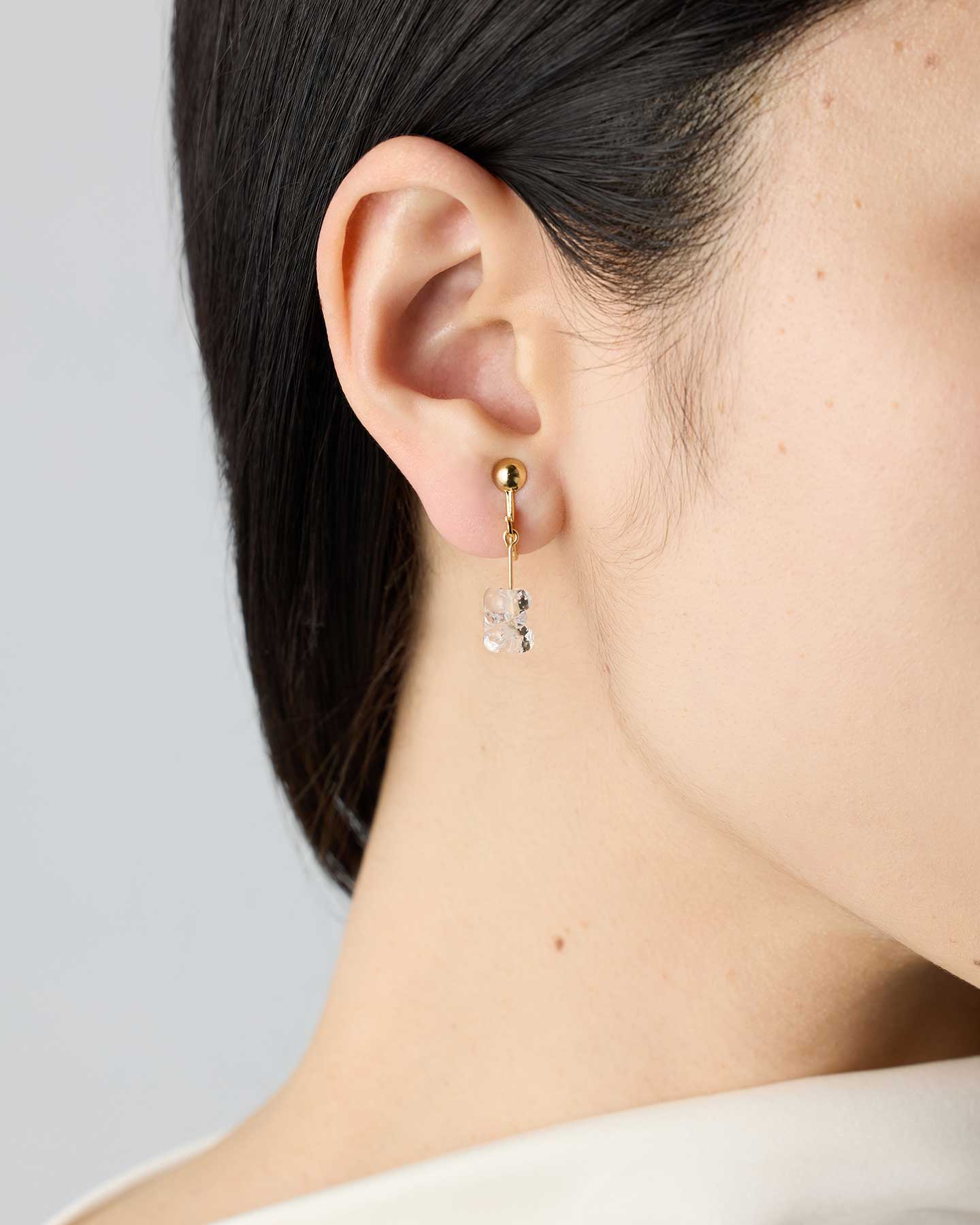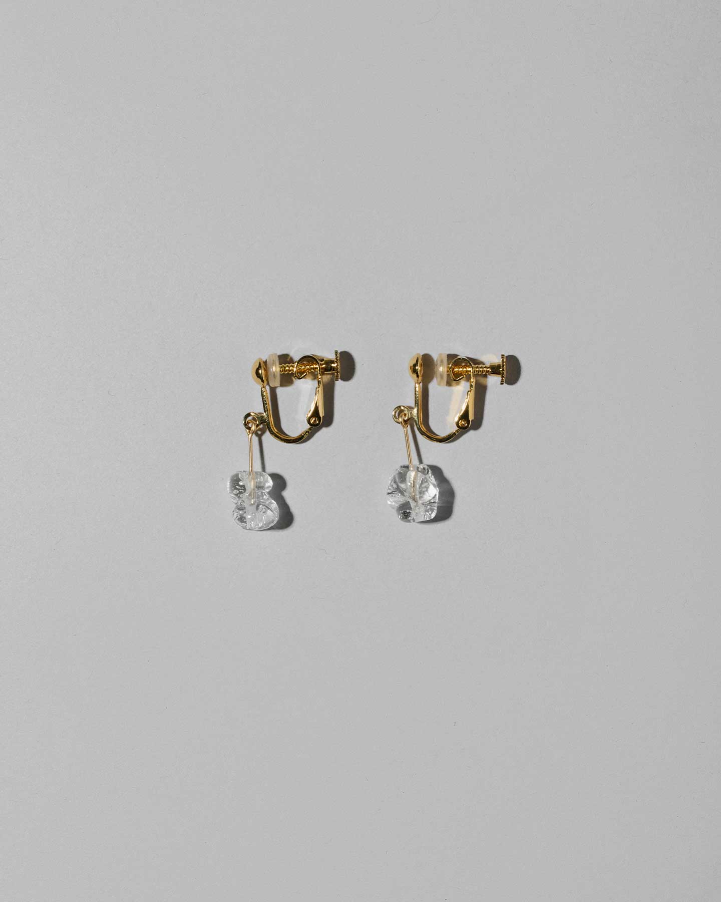 手作業で巻きつけた透明なガラスが生み出す、小さくも躍動感あるフォルムのピアス(イヤリング)。自然に生まれた泡が光を受け、繊細な輝きを放ちます。