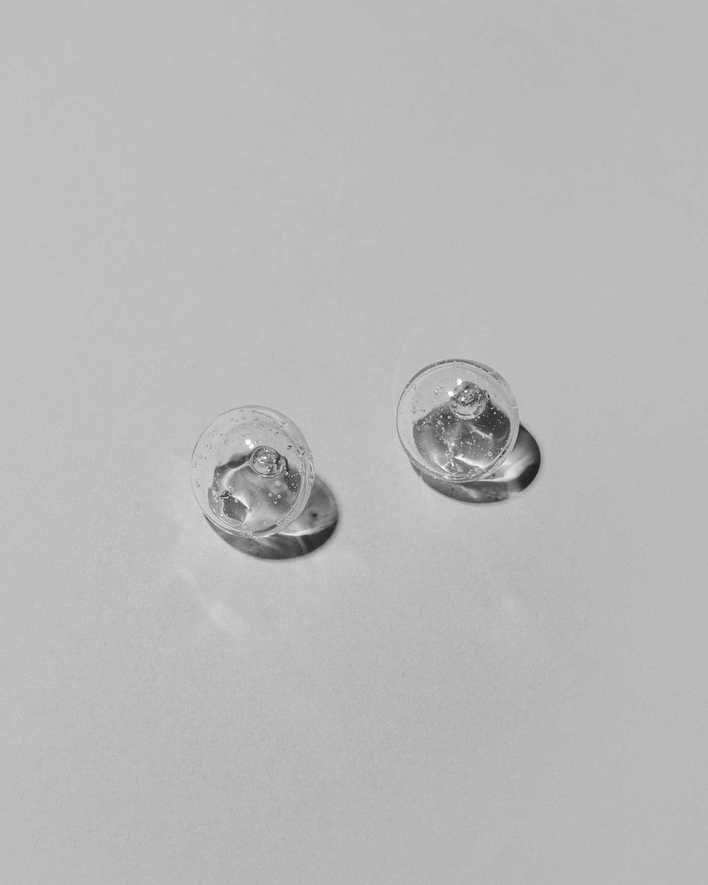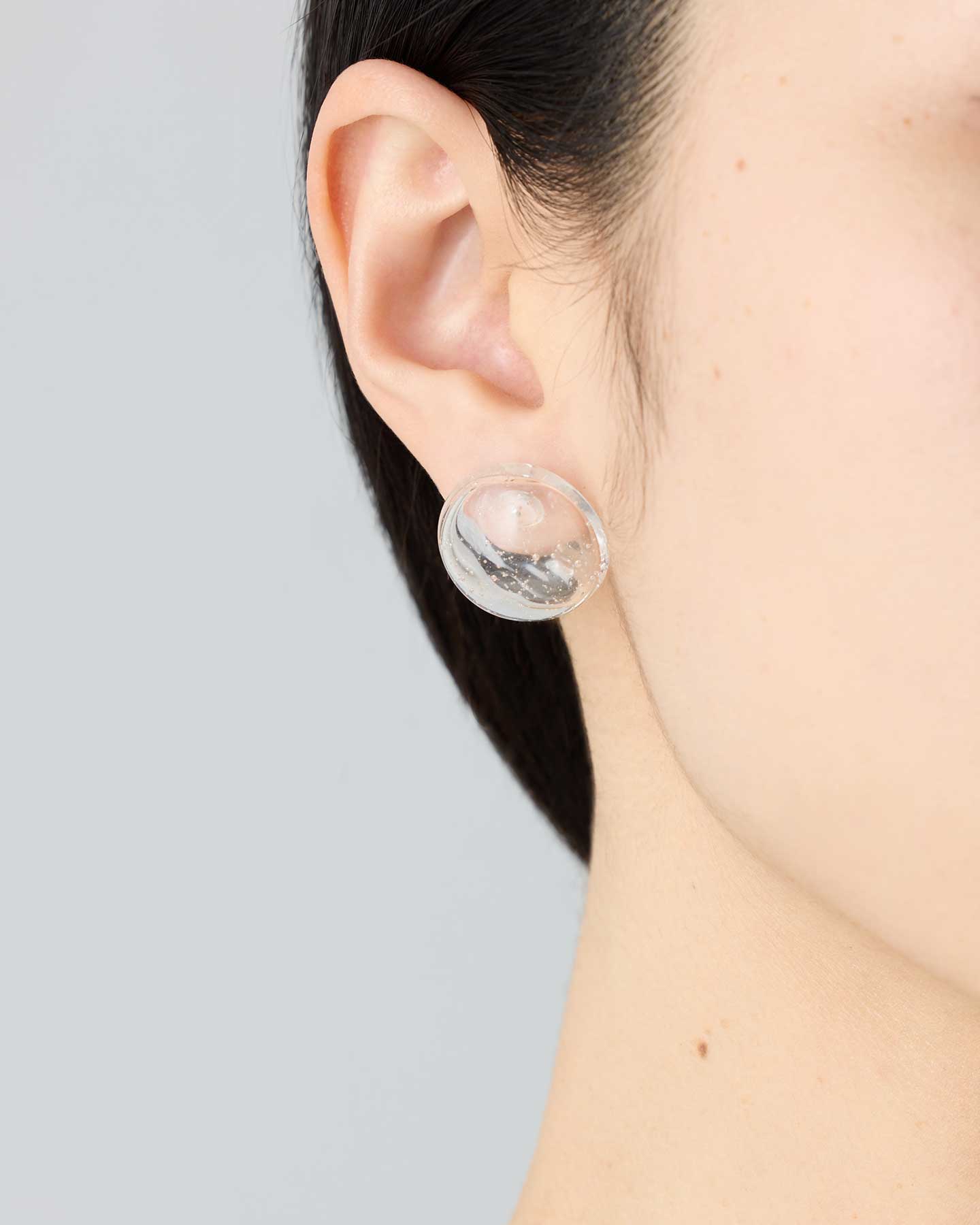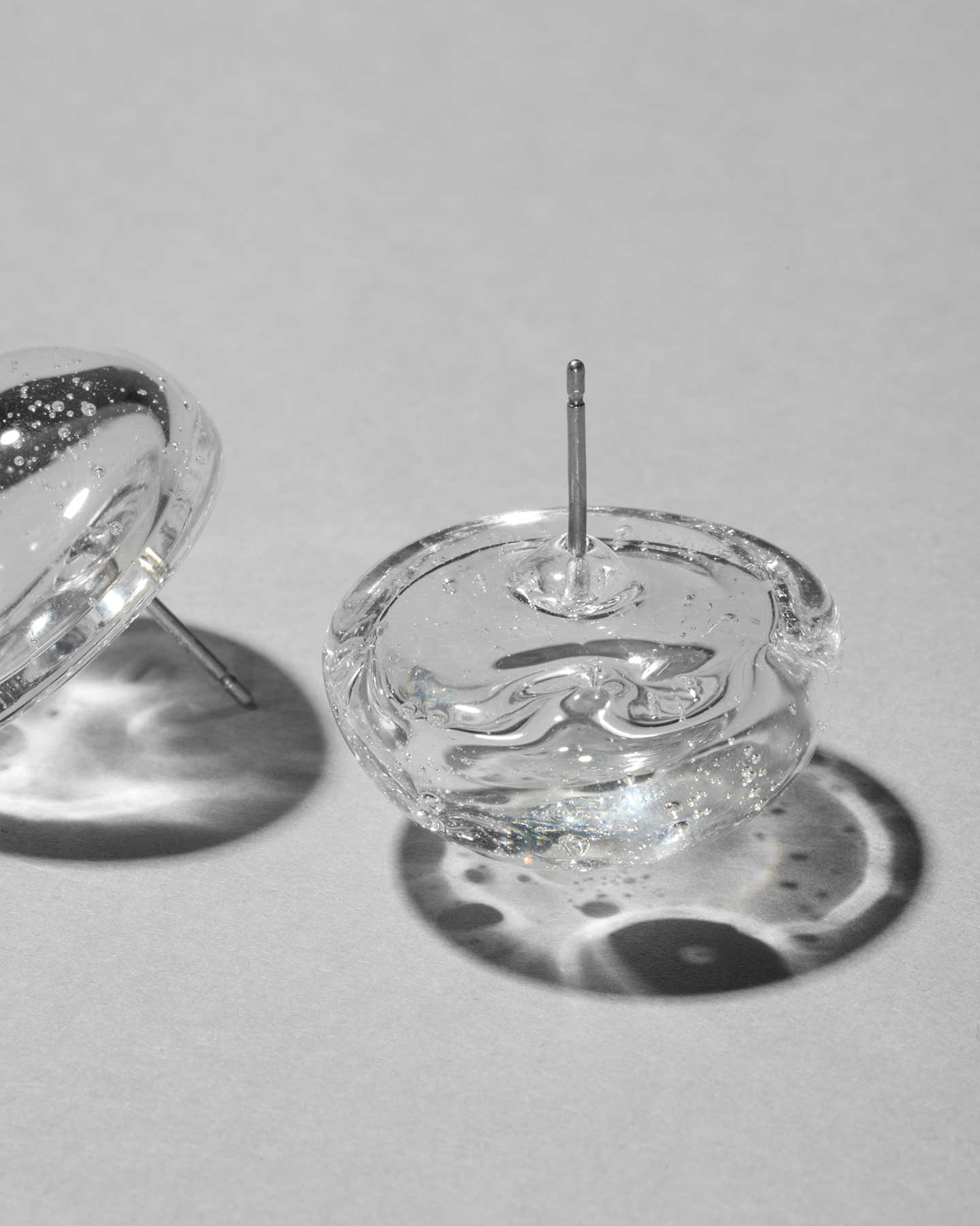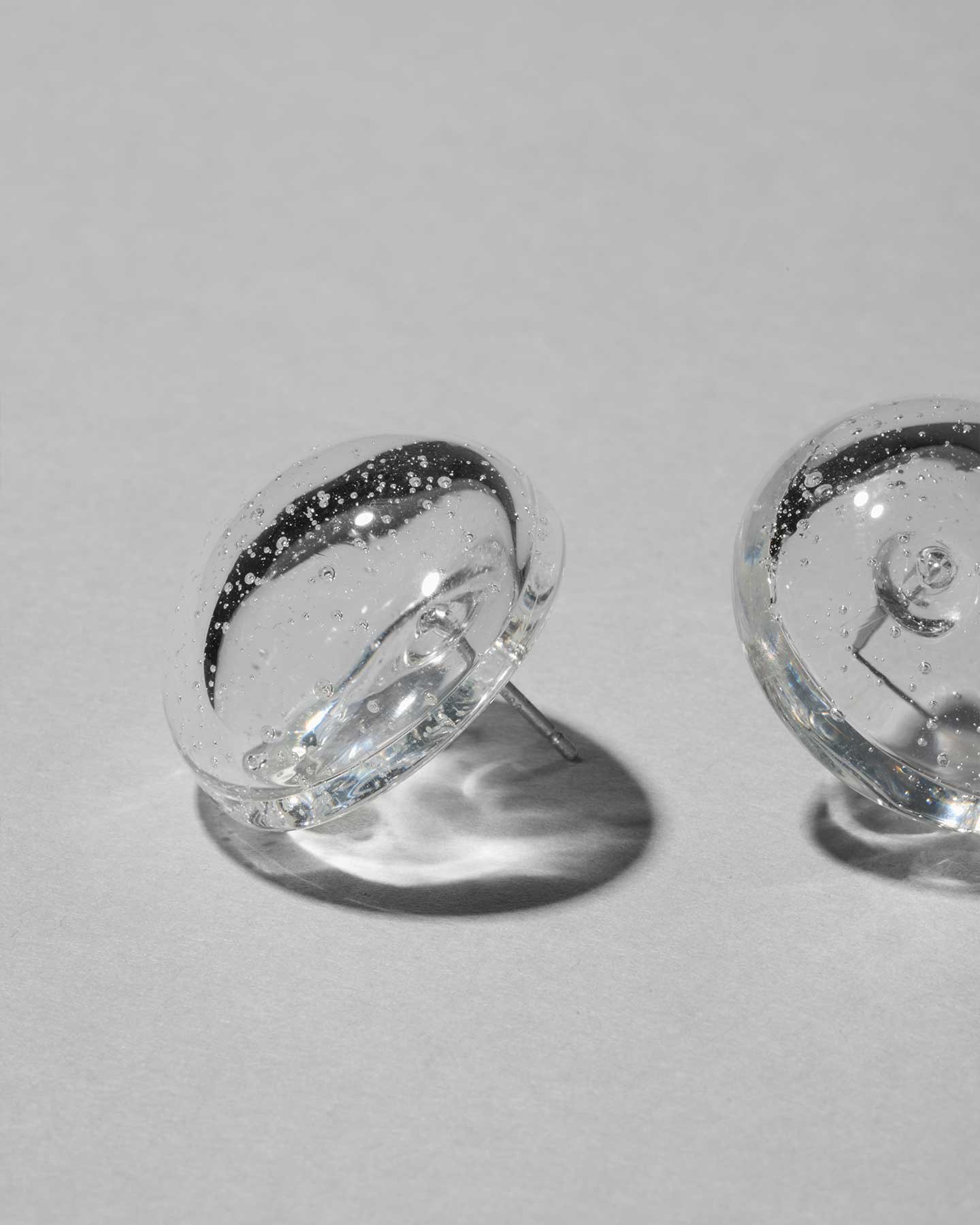 透明なガラスに泡を閉じ込めた、軽やかな中空のピアス。光を透かしながら、繊細なニュアンスを生み出します。