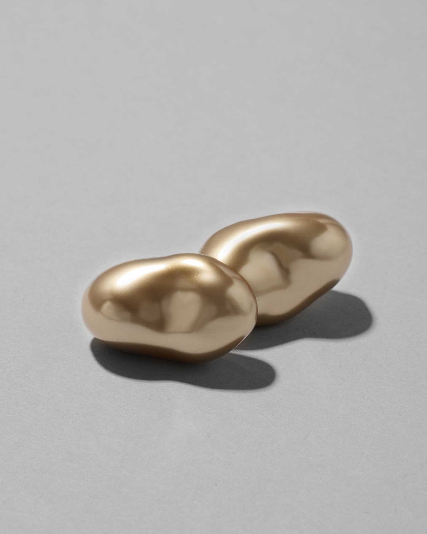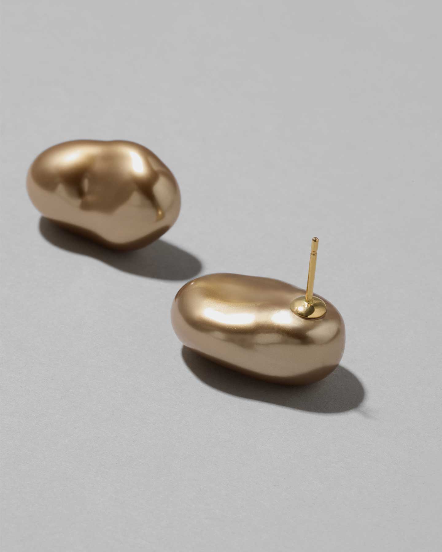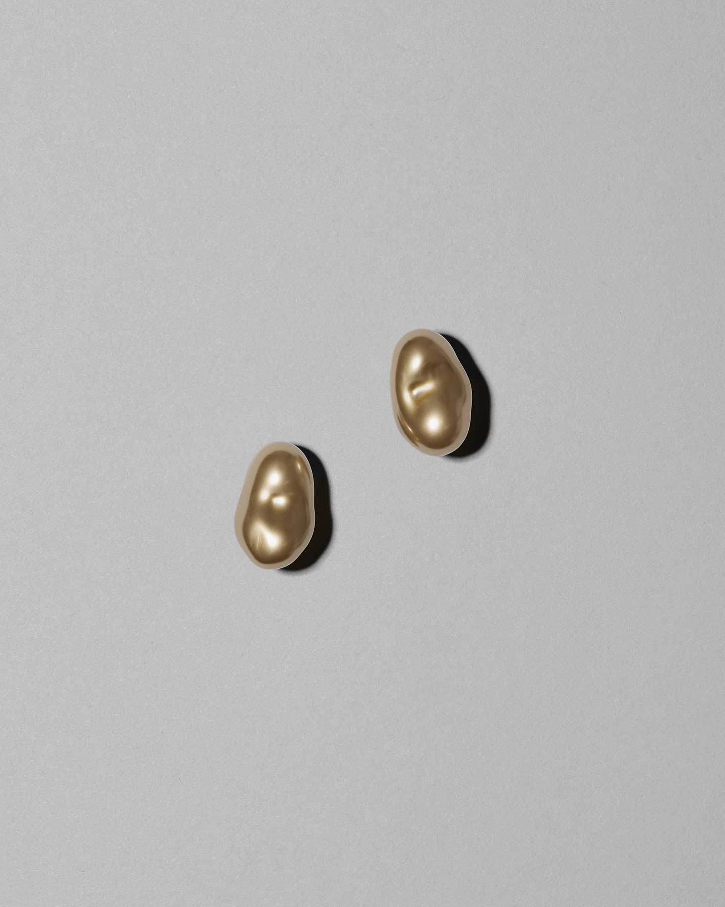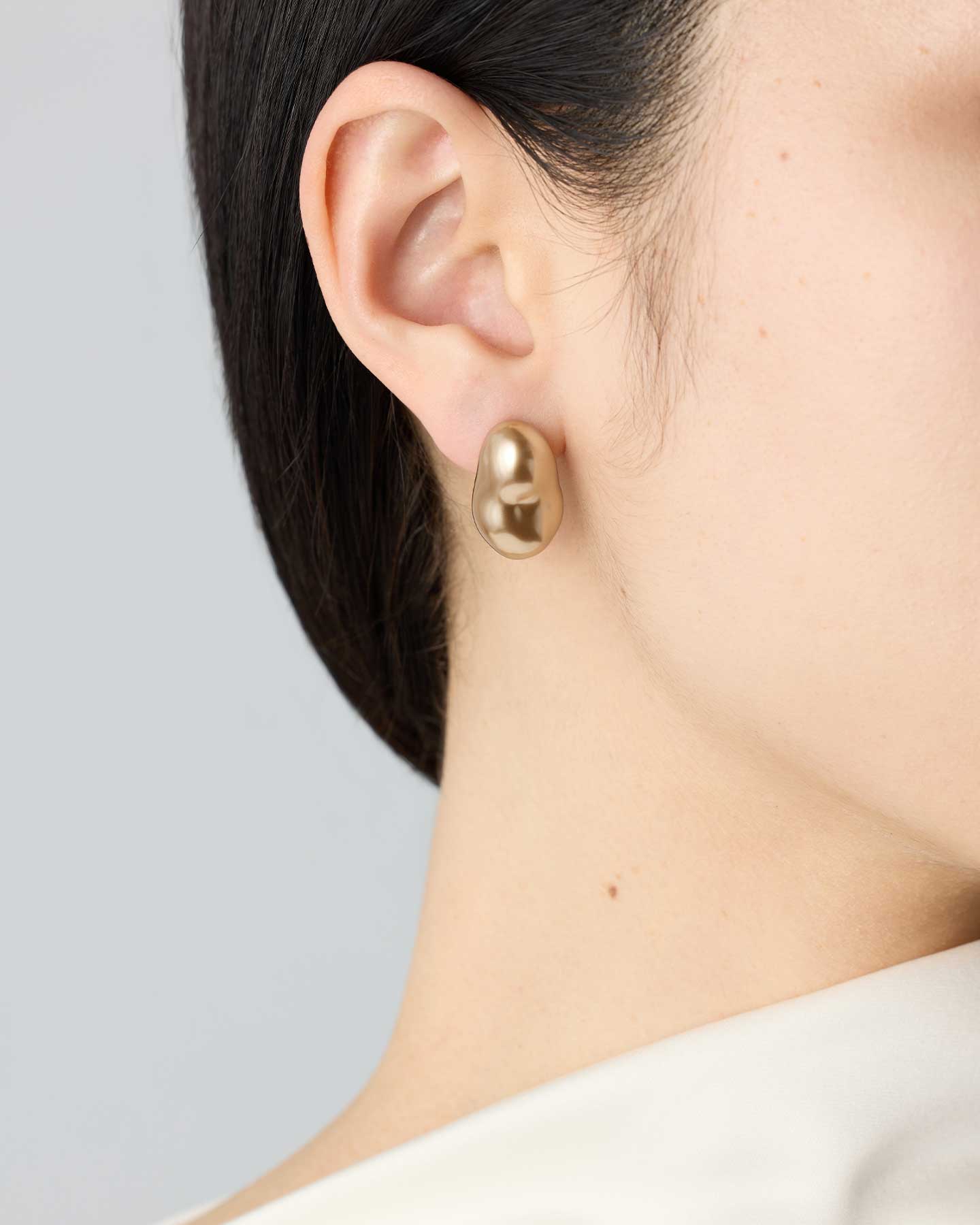 太陽のように輝くゴールドカラーのガラスパールのピアス(イヤリング)。ボリュームのあるバロック型が存在感を放ち、温かみのある光沢が耳元を華やかに彩ります。