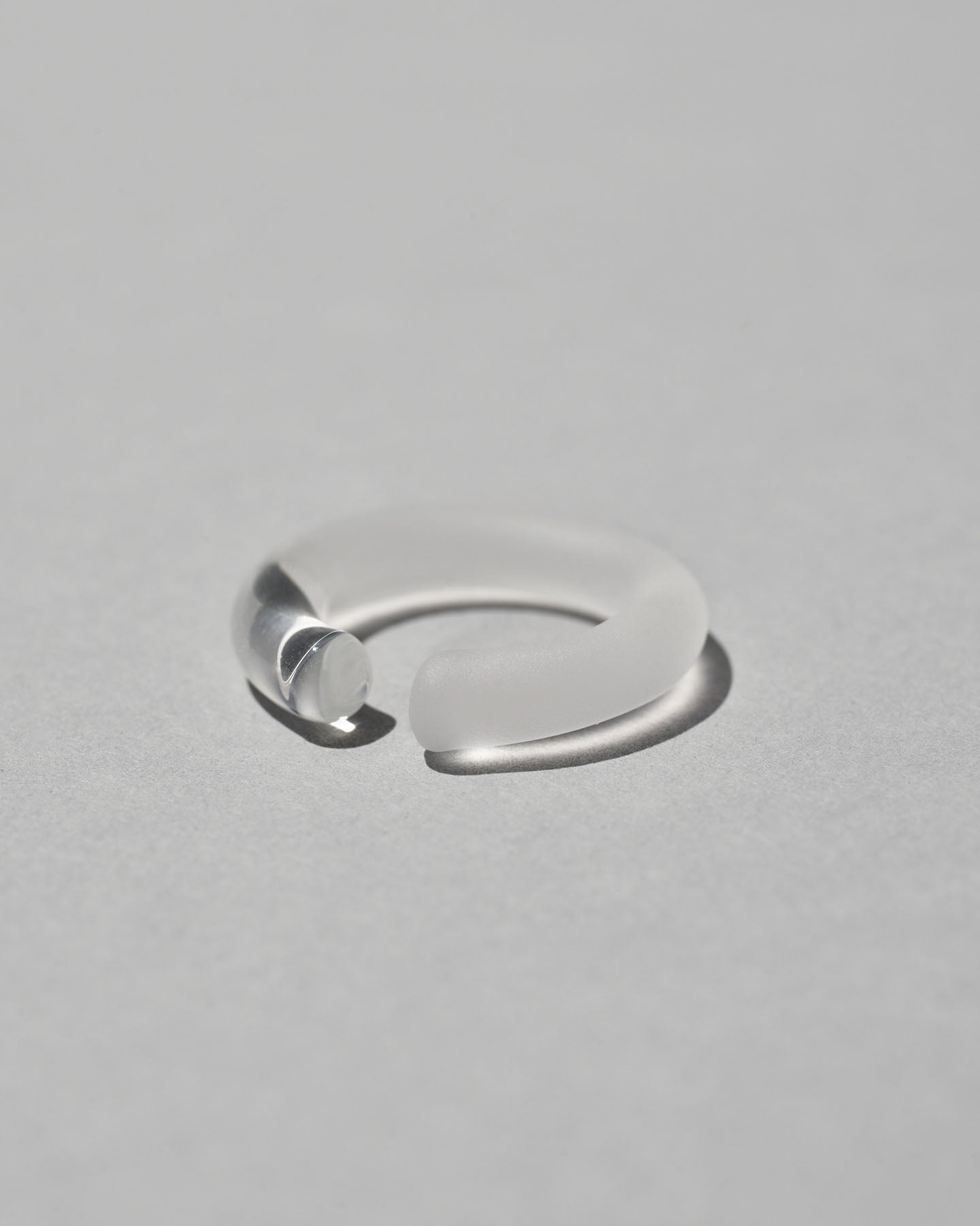 スイスを流れるアーレ川をガラスに閉じ込めたような〈HOTOLI Collection〉。SIRI SIRIで人気のガラスイヤーカフの「Ear Cuff Round」ができました。一本のガラスをバーナーを用いながら職人が高い技術で仕上げています。円の一部を磨きで仕上げ、さりげない透明感を耳に添えてくれます。サイズの合う方はピンキーリングとしてもお使いいただけます。