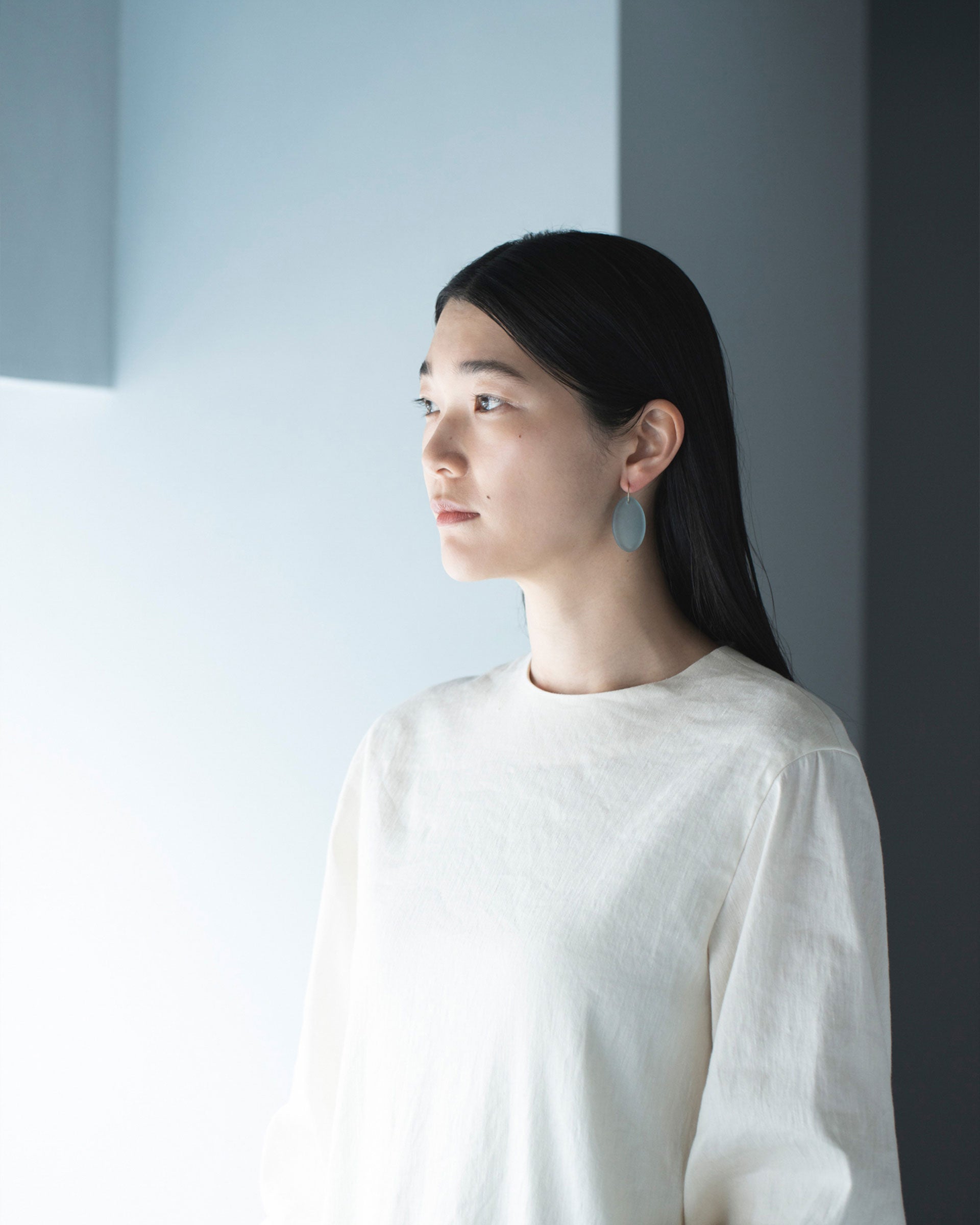The “HOTOLI” collection draws inspiration from the image of The Aare River in Swizerland trapped in glass. The “Earrings Oval Blue” incorporate the oval shape often seen in Switzerland. They come in an eye-catching deep blue hue reminiscent of the abundantly flowing water. SIRI SIRI uses blue glass for the first time in this collection. They make for a great addition to an elegant look when worn with monotone colors or black.