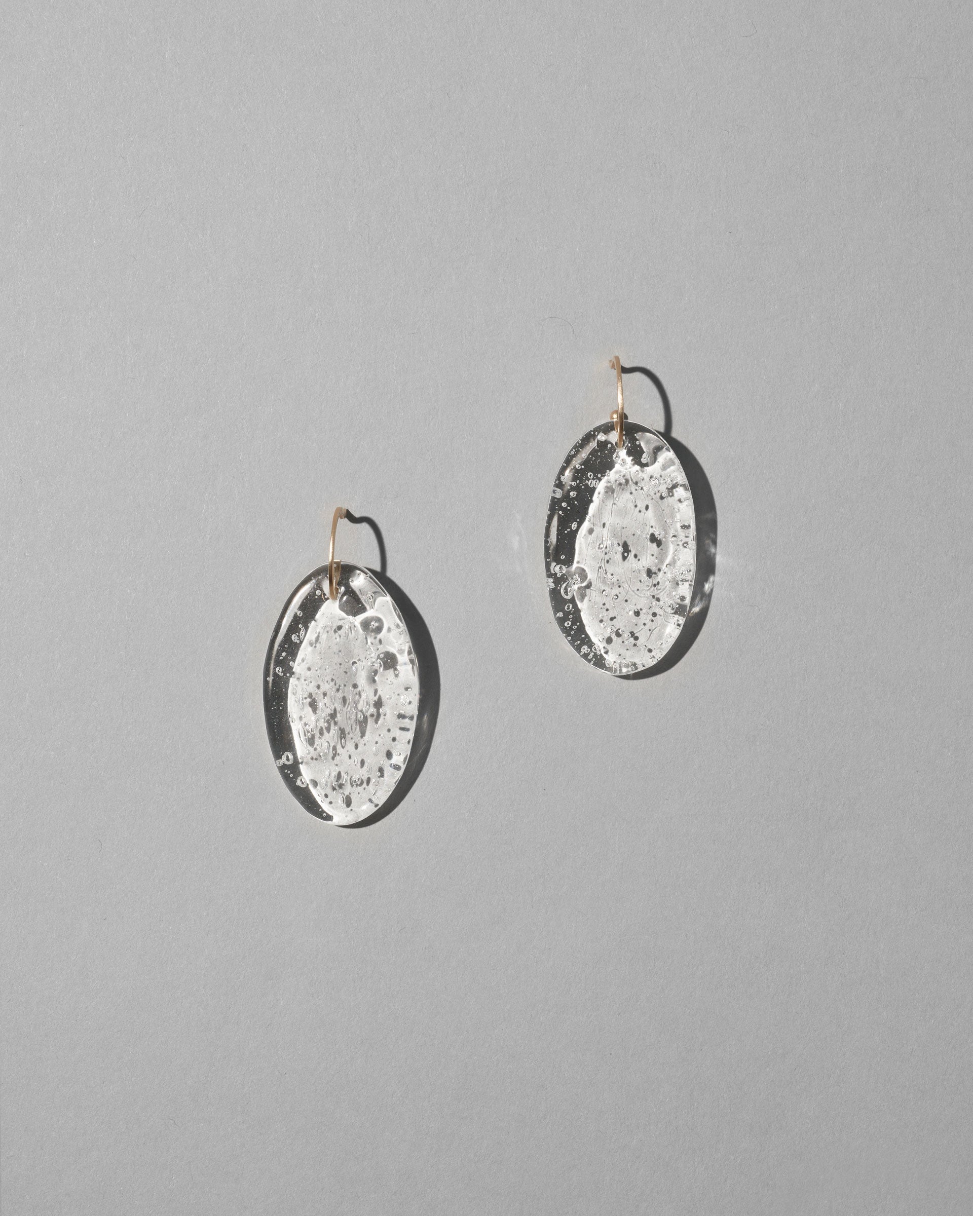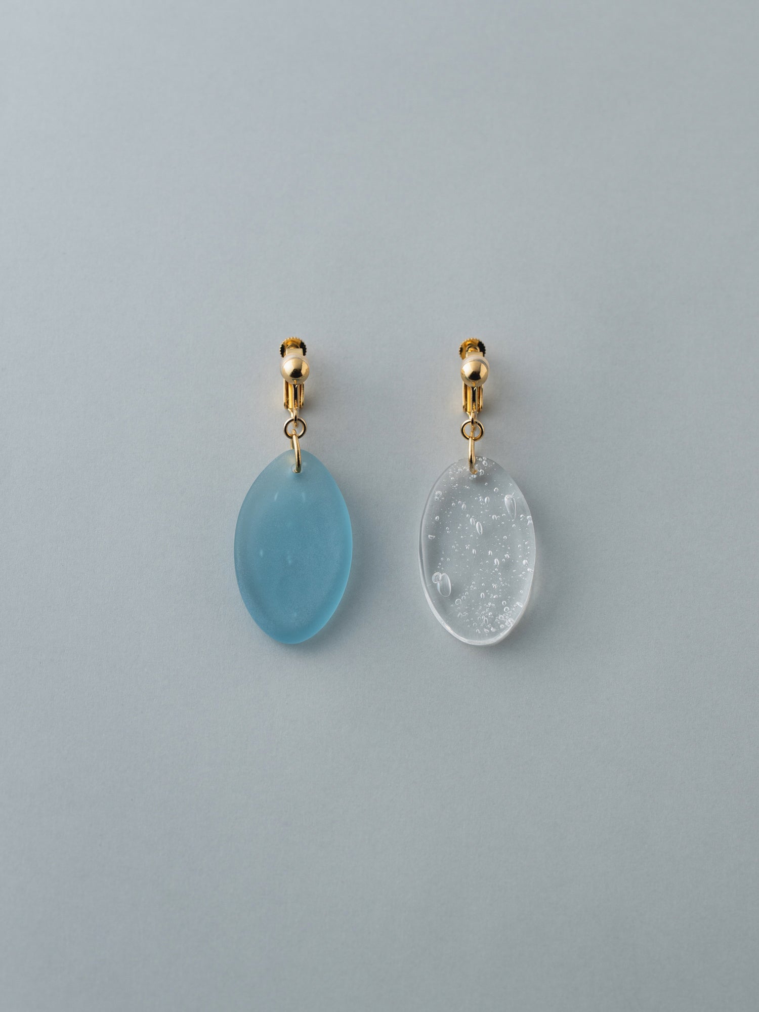 バーナーワークではめずらしい泡入りガラスの曲線が美しい「Earrings Oval BUBBLE」は、夏の日差しを受けて輝く川面をすくい上げたようなピアスです。