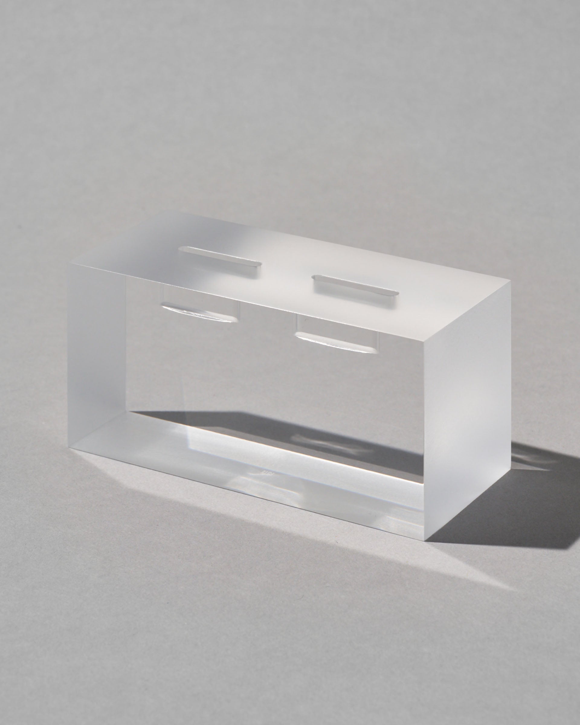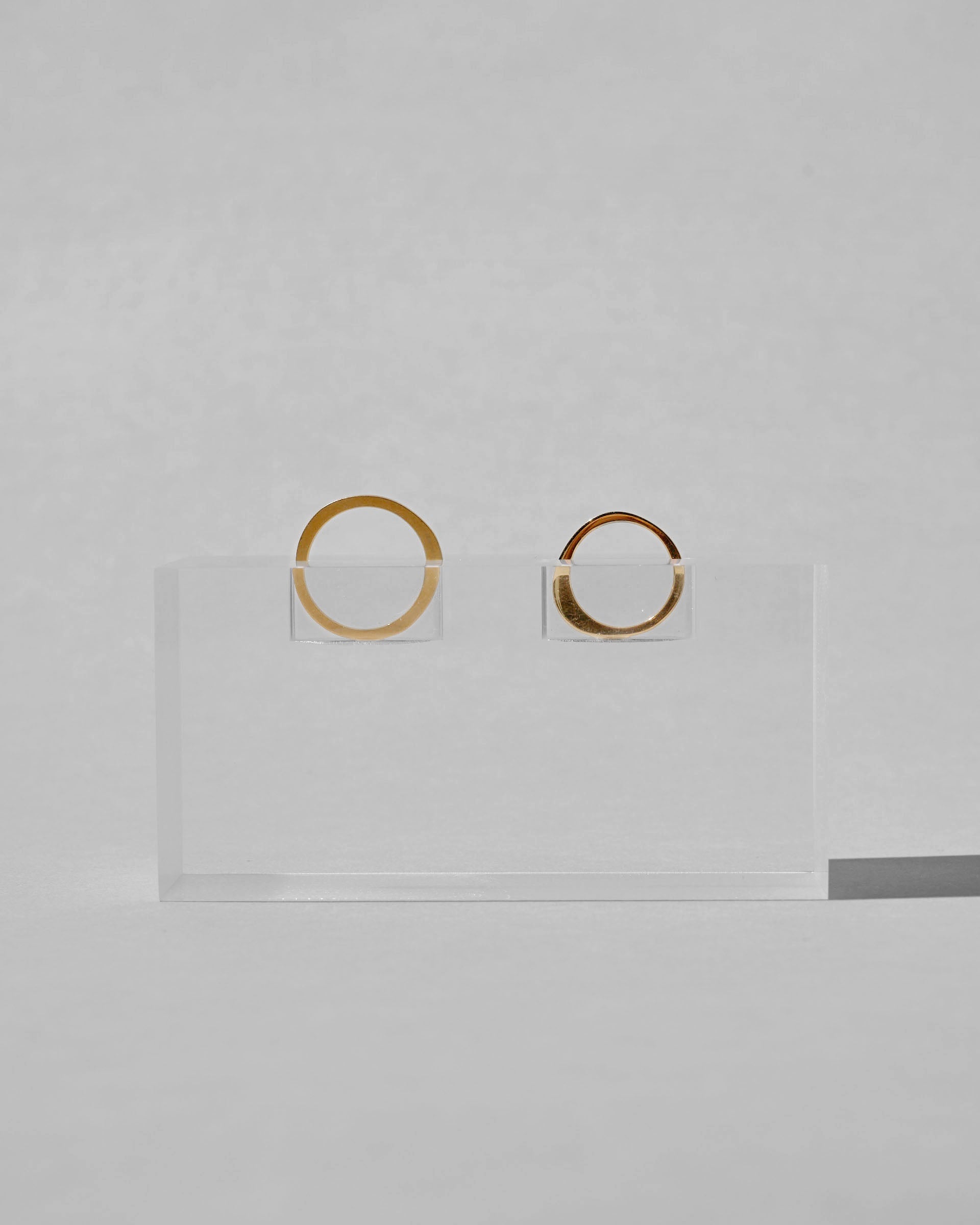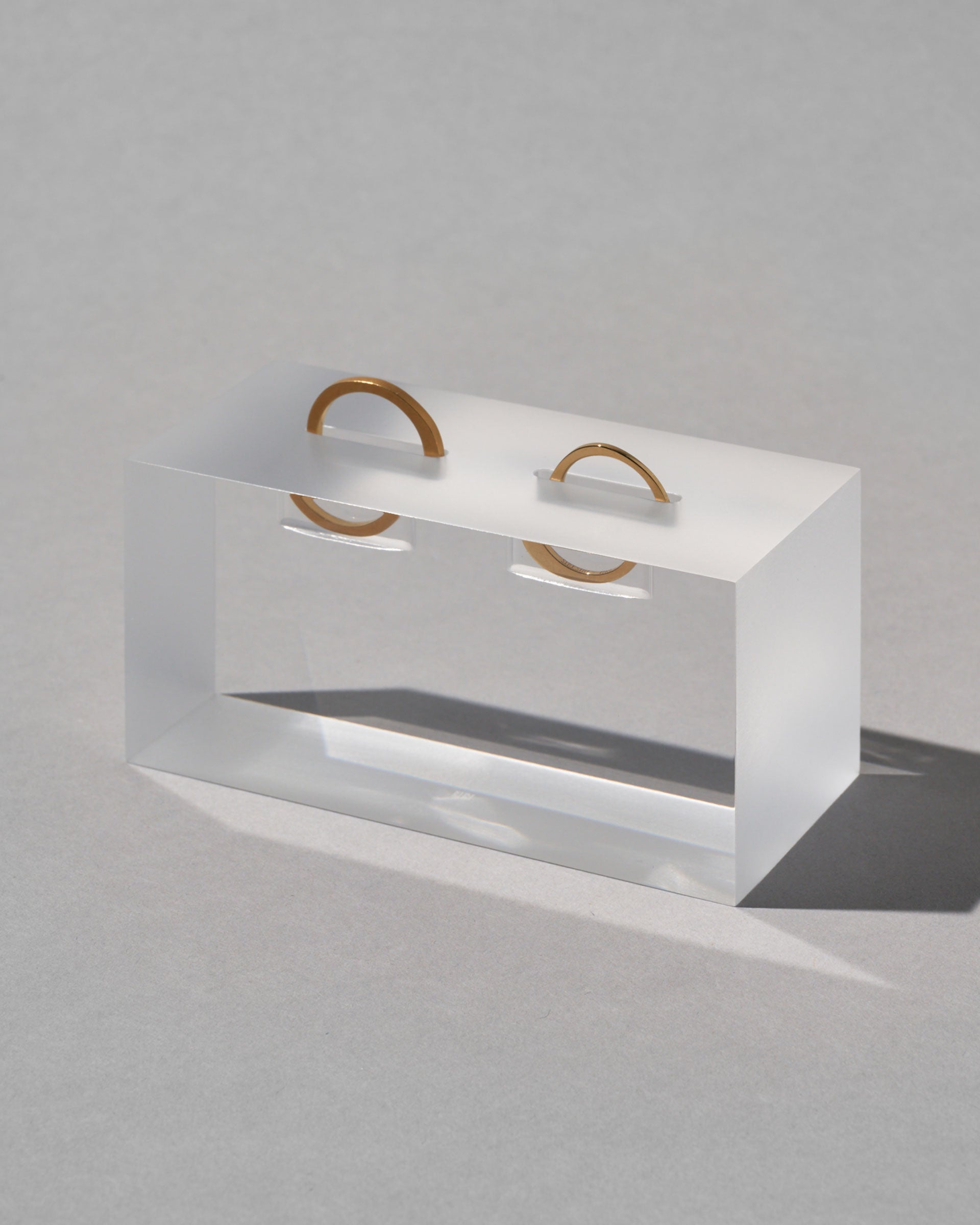 光を捉えるアクリルの美しさが際立つリングホルダー。