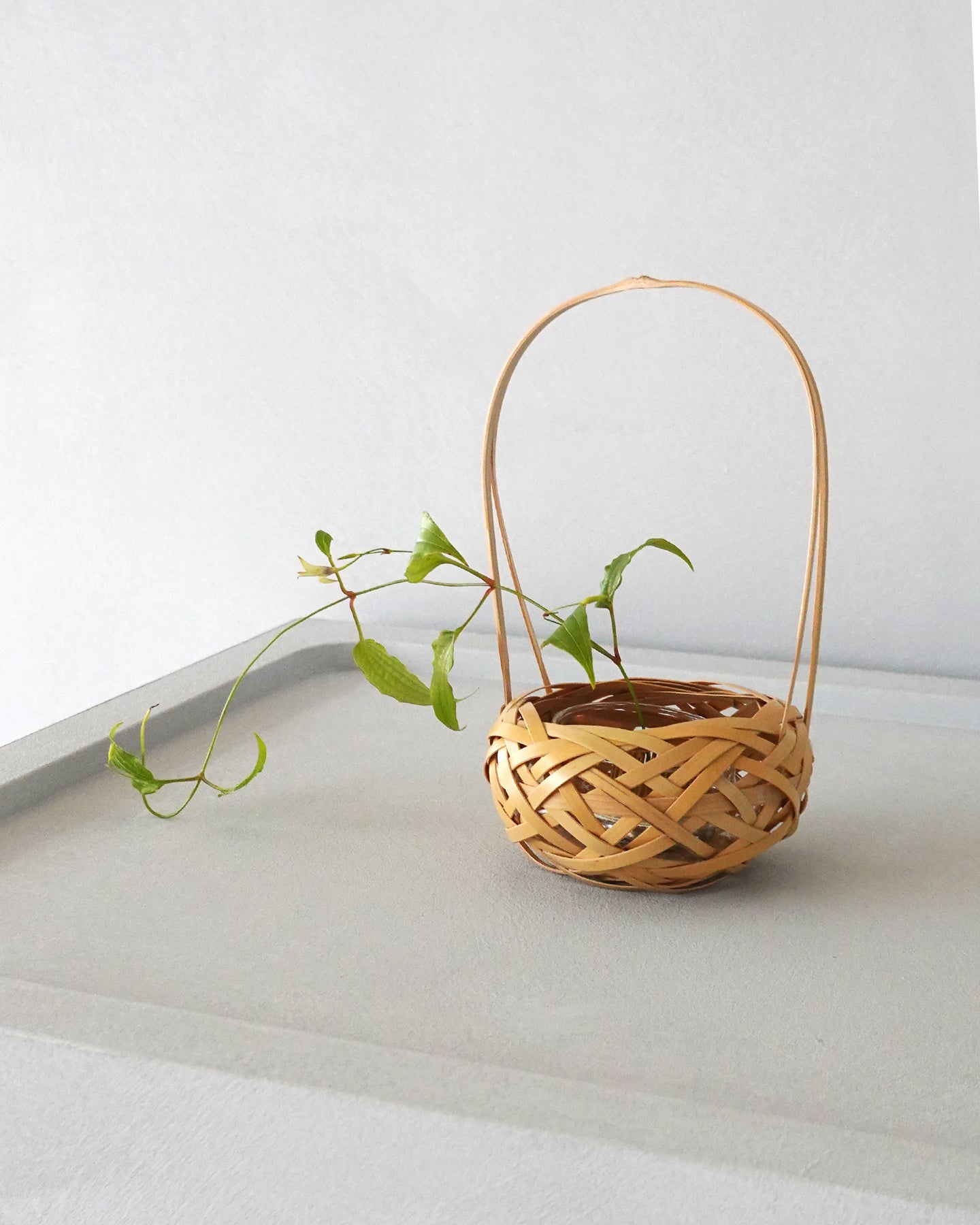手のひらサイズの花籠は、小皿と剣山を合わせて花を生けたり、空間に添えるインテリアとしてもお使いいただけます。